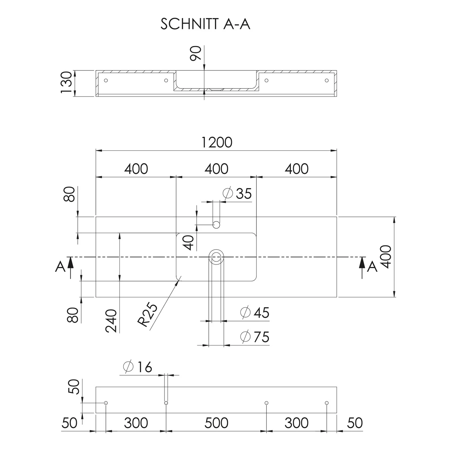 Steinberg Serie 444 Wandwaschtisch aus Mineo Stone 120 x 40 cm