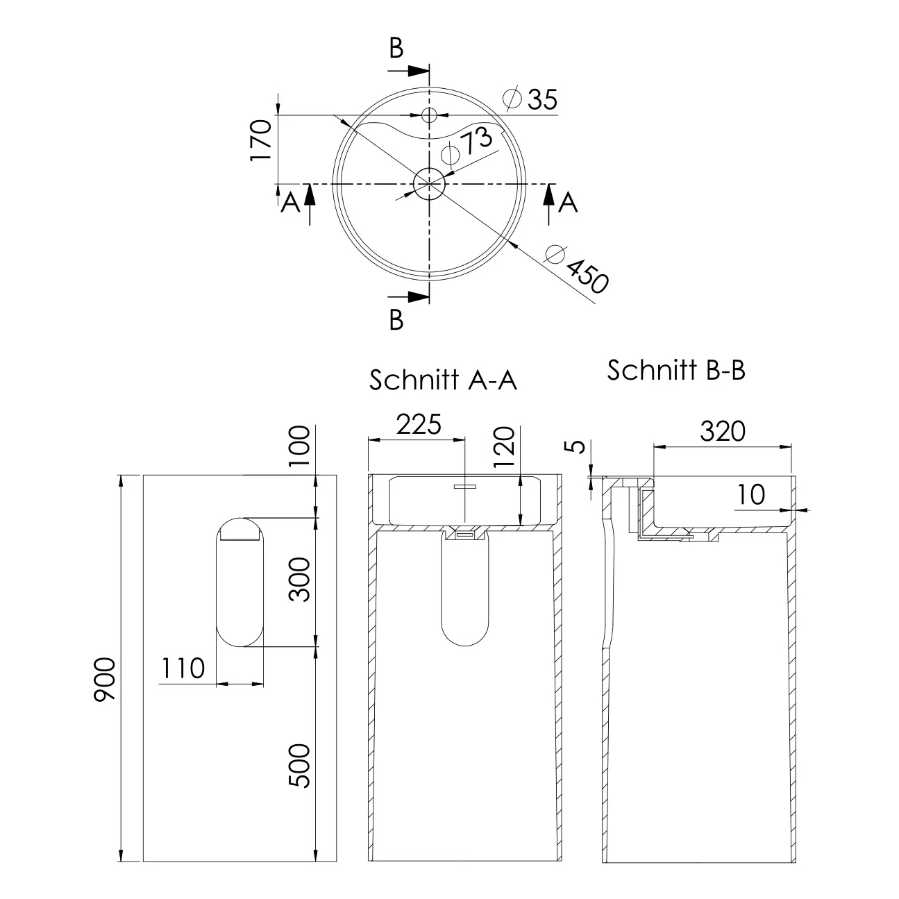 Steinberg Serie 445 Standwaschtisch aus Mineo Stone Ø 45 cm