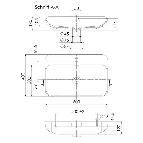 Steinberg Serie 449 Wandwaschtisch aus Mineo Stone 60 x 40 cm