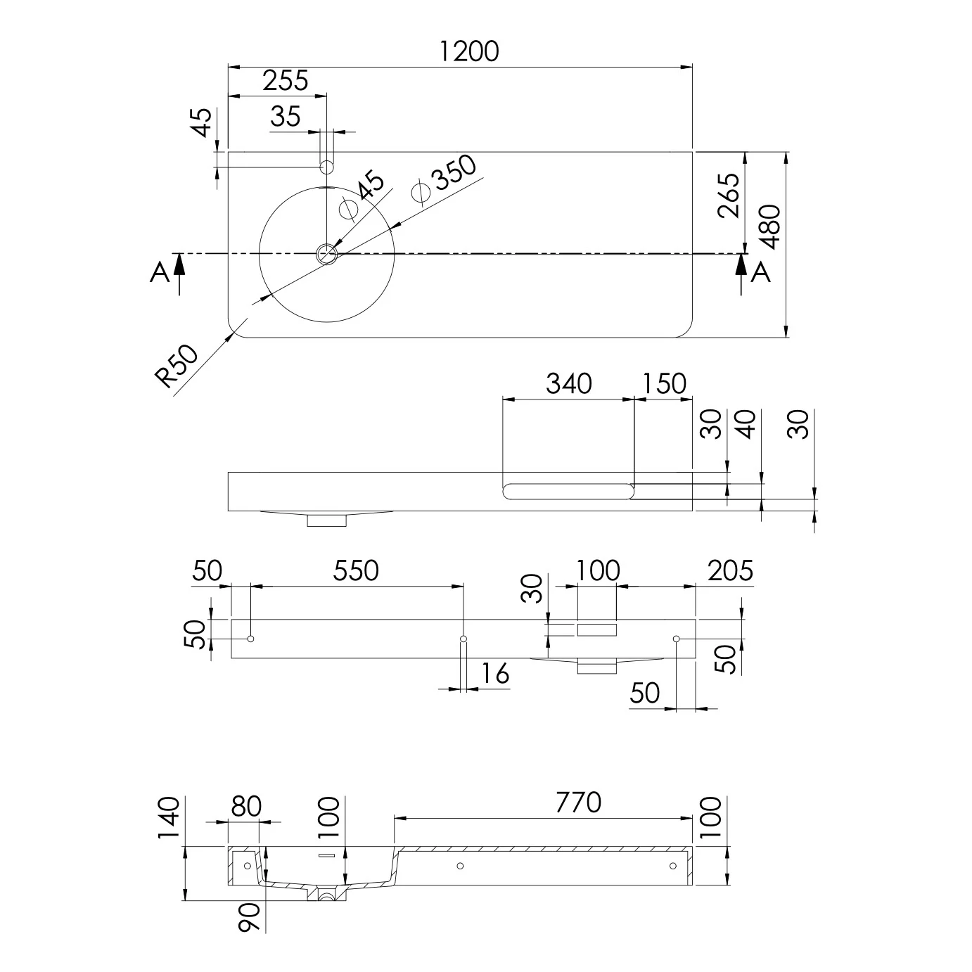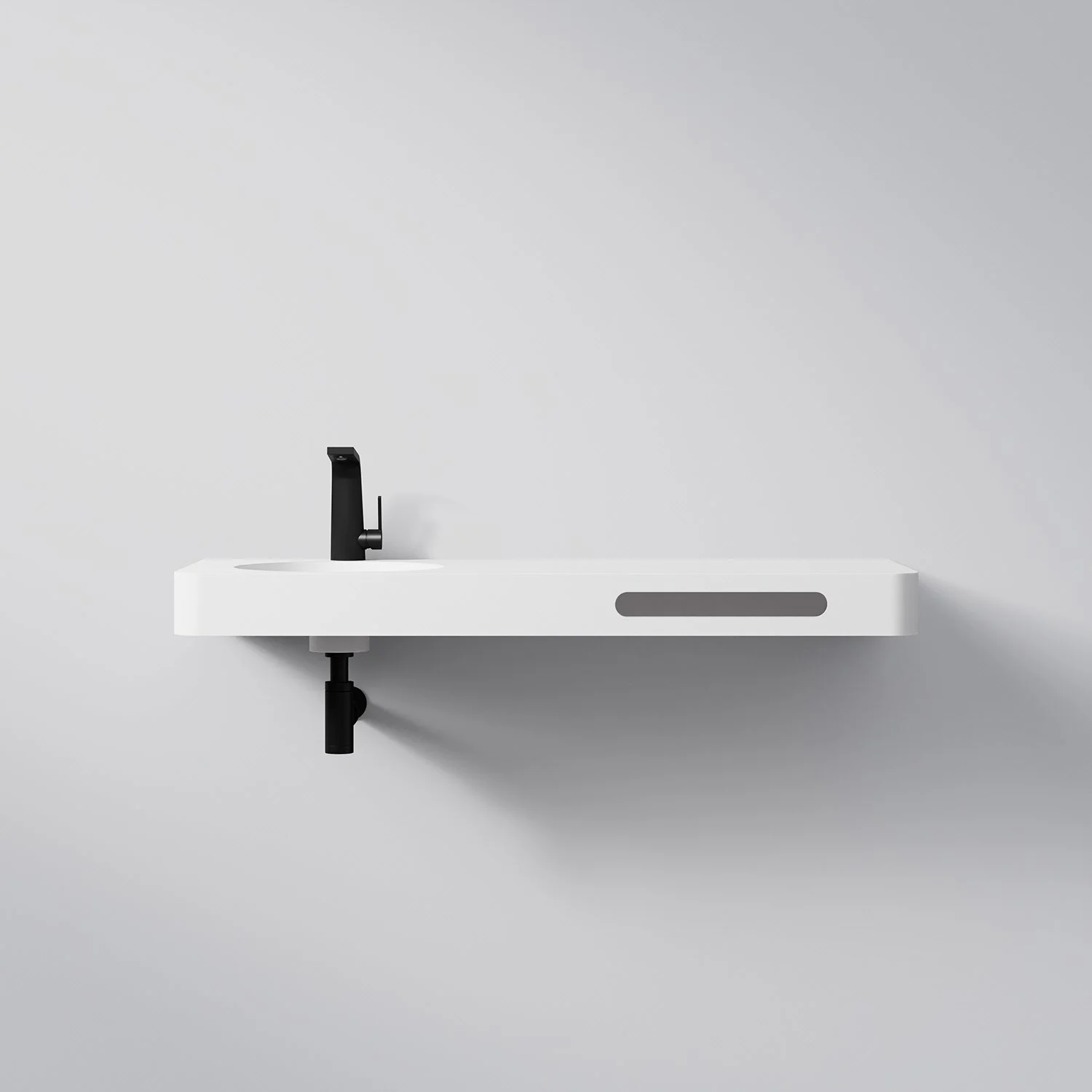 Steinberg Serie 449 Wandwaschtisch mit Handtuchhalter und 1 Hahnloch links aus Mineo Stone 120 x 48 cm