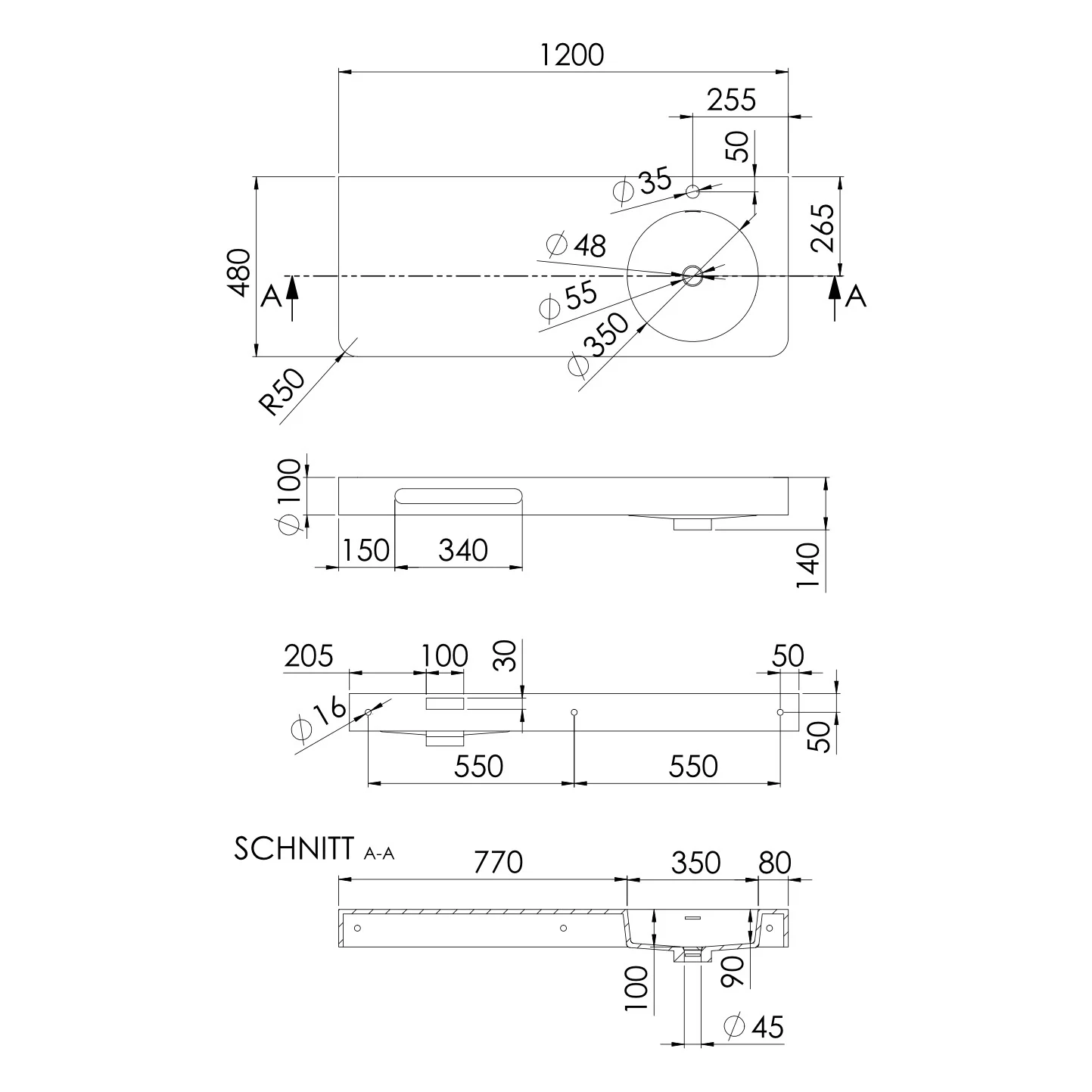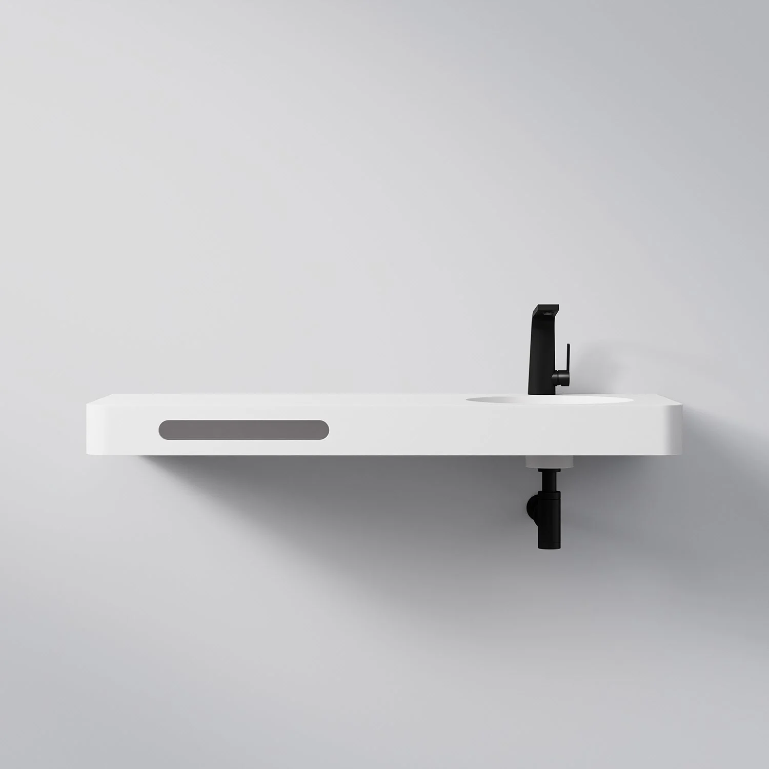 Steinberg Serie 449 Wandwaschtisch mit Handtuchhalter und 1 Hahnloch rechts aus Mineo Stone 120 x 48 cm