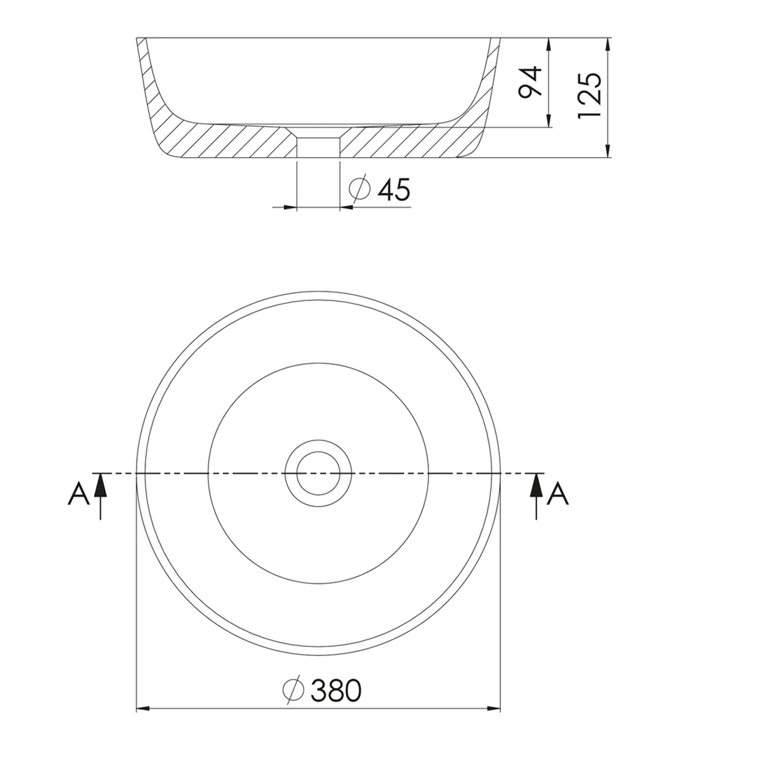Steinberg Serie 540 Aufsatzwaschtisch Ø 38 cm