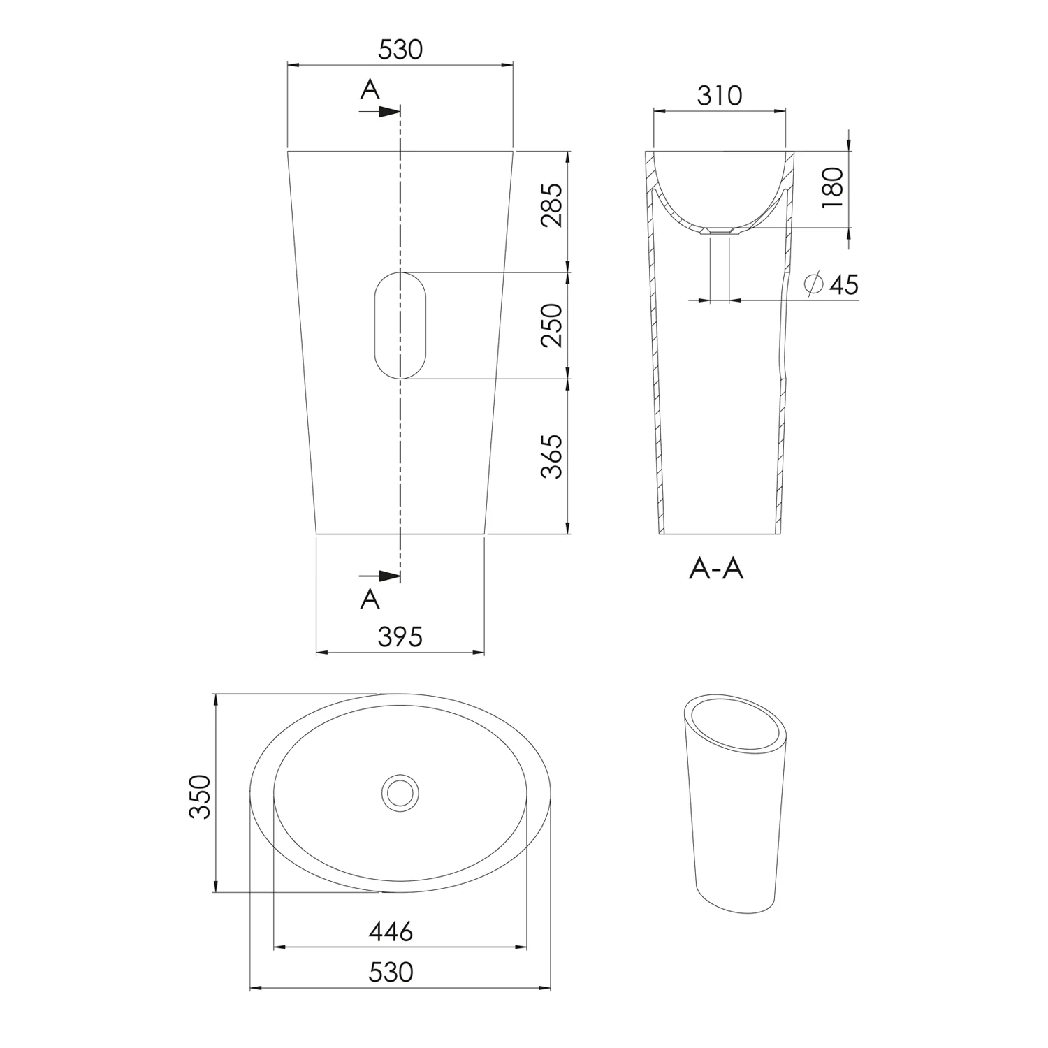 Steinberg Serie 540 Standwaschtisch 53 x 35 x 90 cm