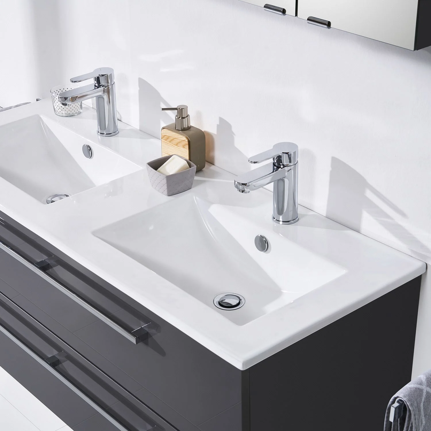 Steinkamp Life 2.0 Badmöbel Set 121 cm mit LED-Spiegelschrank, Doppelwaschtisch