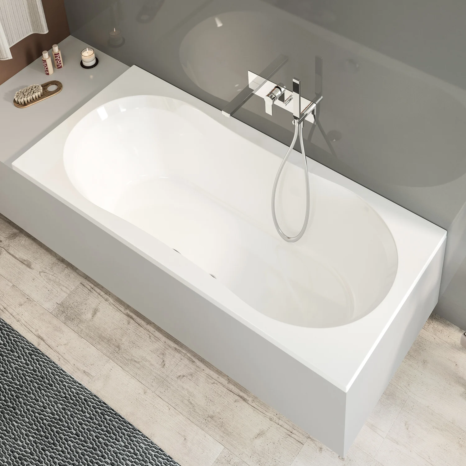 - Zur Installation der Wanne benötigen Sie entweder Wannenfüße oder den passenden Wannenträger. Bitte bestellen Sie Ihre Auswahl aus dem Zubehör mit.