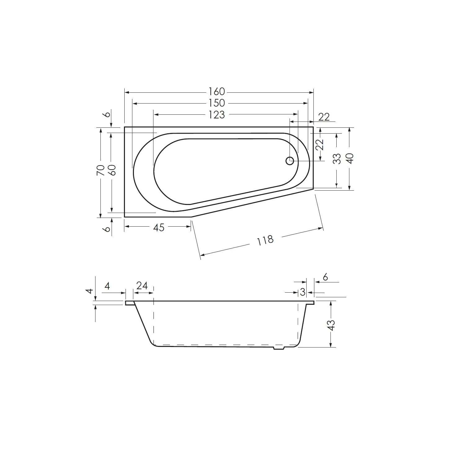 Steinkamp Life Raumsparbadewanne 160 x 70 cm, rechts