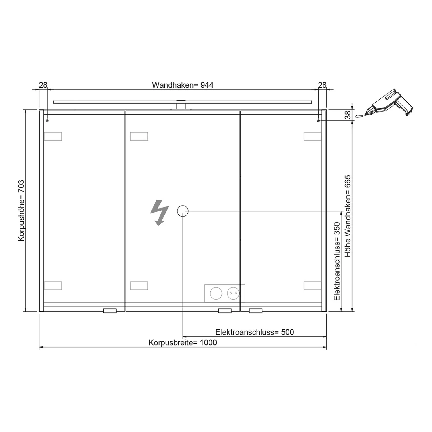 Steinkamp Living 2.0 Spiegelschrank 100 cm mit 3 Türen und LED-Aufsatzleuchte