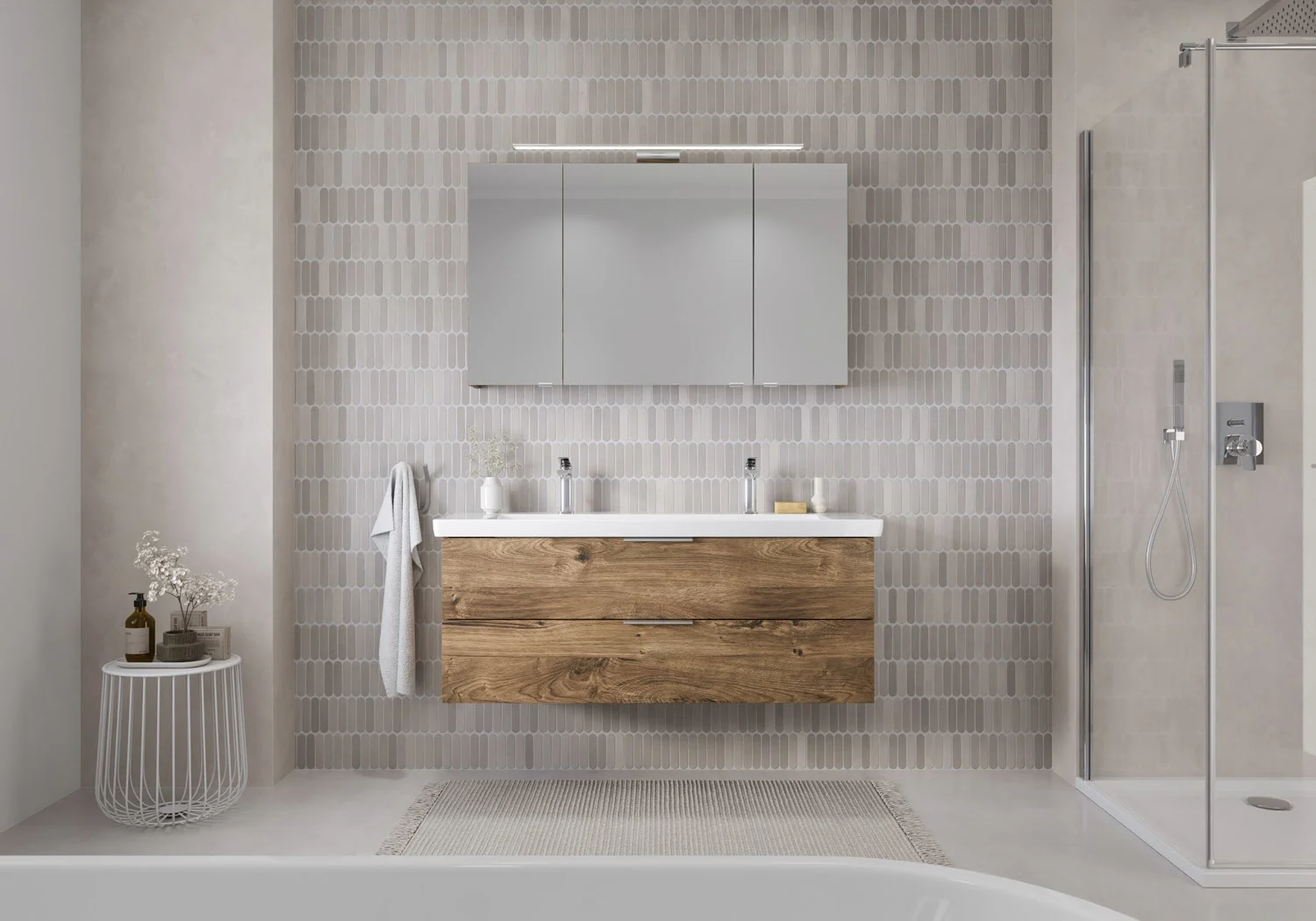 Flexibel. Passgenau. Stilvoll. – Die Badkollektion, die sich Ihrem Waschtisch anpasst!