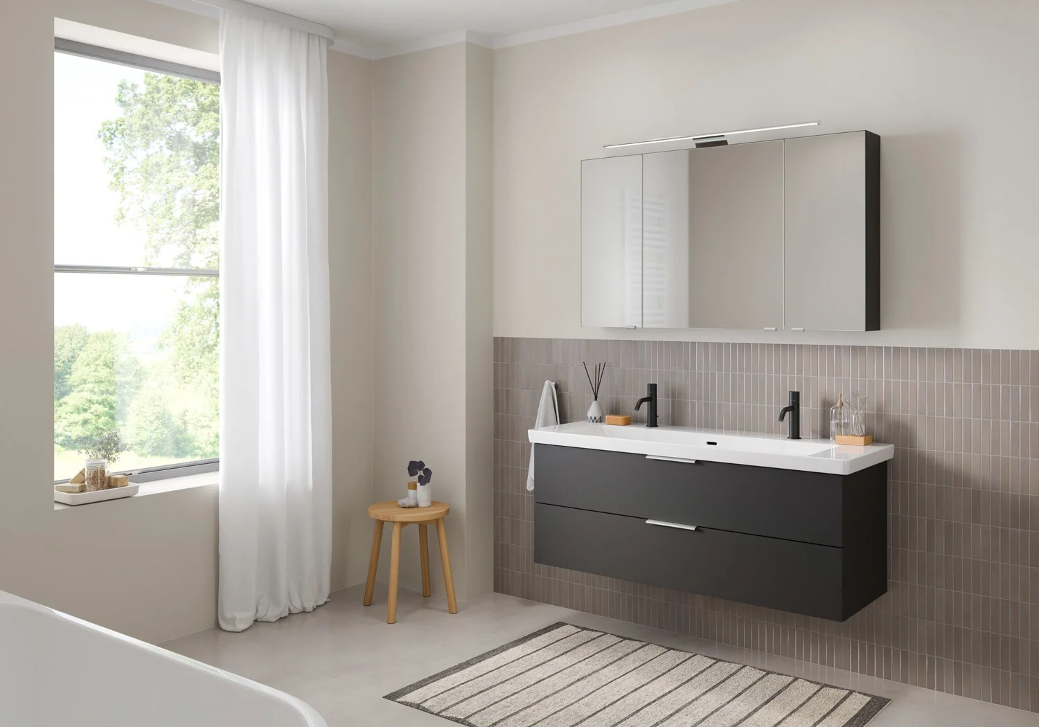 Flexibel. Passgenau. Stilvoll. – Die Badkollektion, die sich Ihrem Waschtisch anpasst!