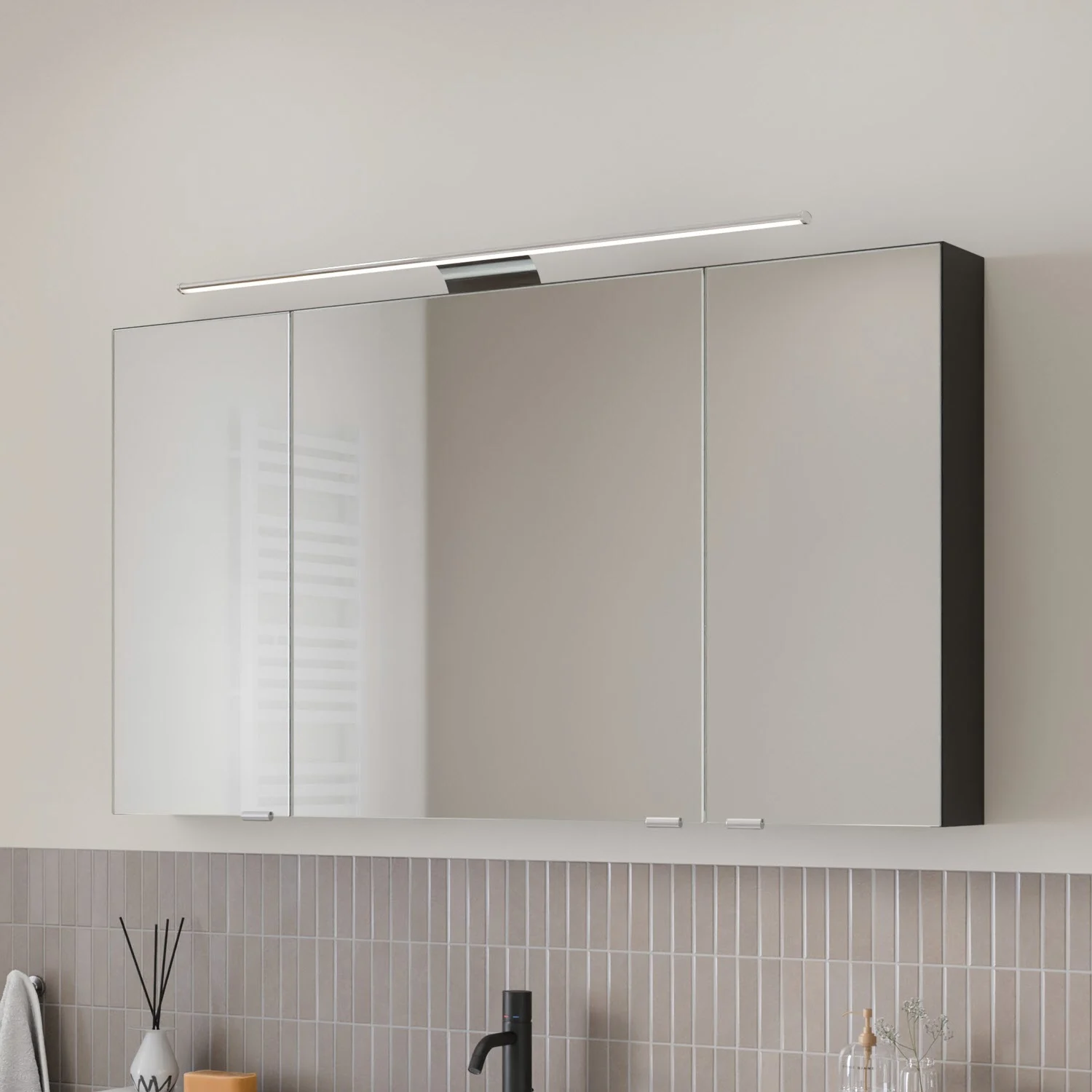 Steinkamp Living 2.0 Spiegelschrank 120 cm mit 3 Türen und LED-Aufsatzleuchte