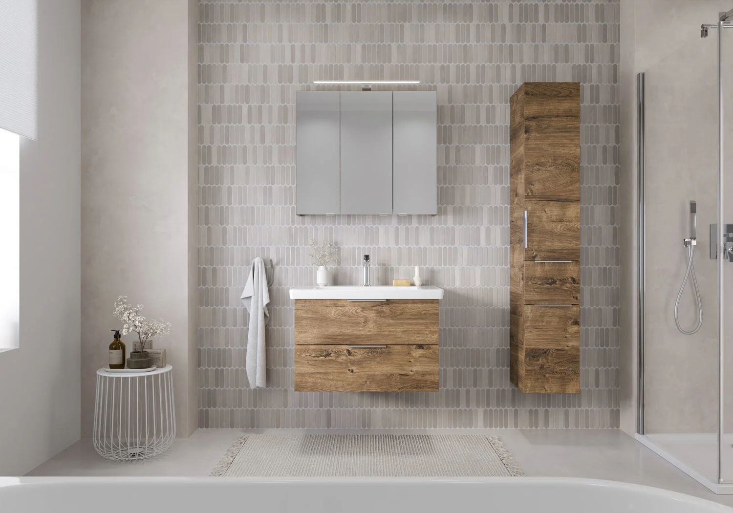 Steinkamp Living 2.0 Spiegelschrank 80 cm mit 3 Türen und LED-Aufsatzleuchte