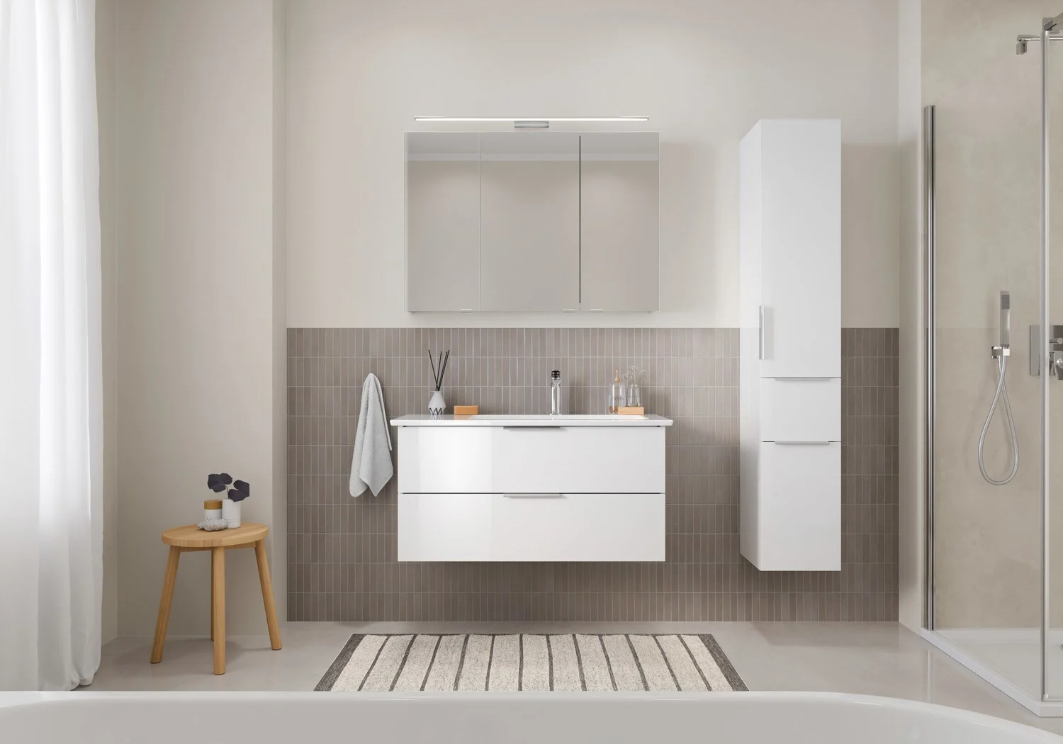 Ergänzen Sie Ihr Badezimmer ganz nach Wunsch mit dem passenden Hochschrank – für ein rundum stimmiges Einrichtungskonzept.
