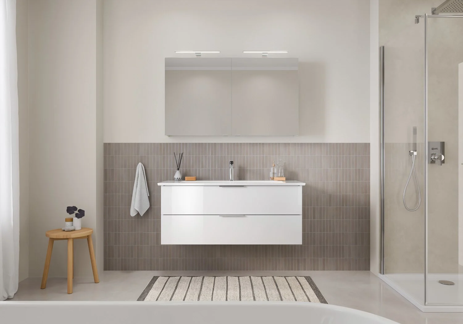 Ergänzen Sie Ihr Badezimmer ganz nach Wunsch auch noch mit dem passenden Hochschrank – für ein rundum stimmiges Einrichtungskonzept.