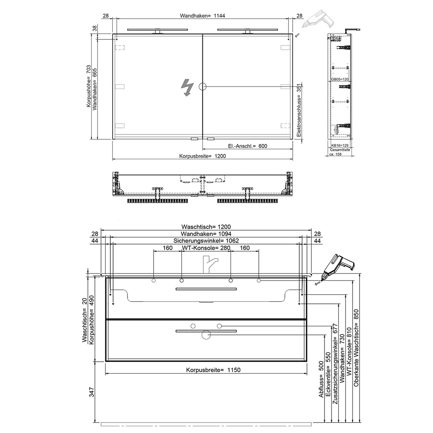 | Ausführung: | mit Spiegelschrank (2 Türen) |