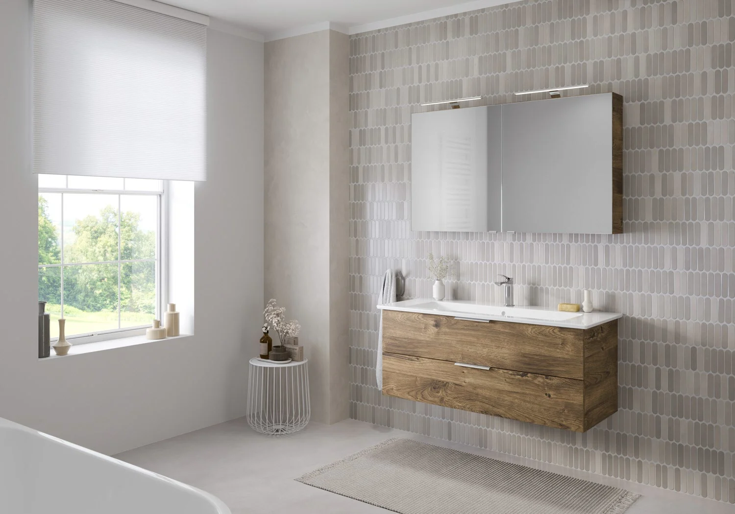 Flexibel. Passgenau. Stilvoll. – Die Badkollektion, die sich Ihrem Waschtisch anpasst!