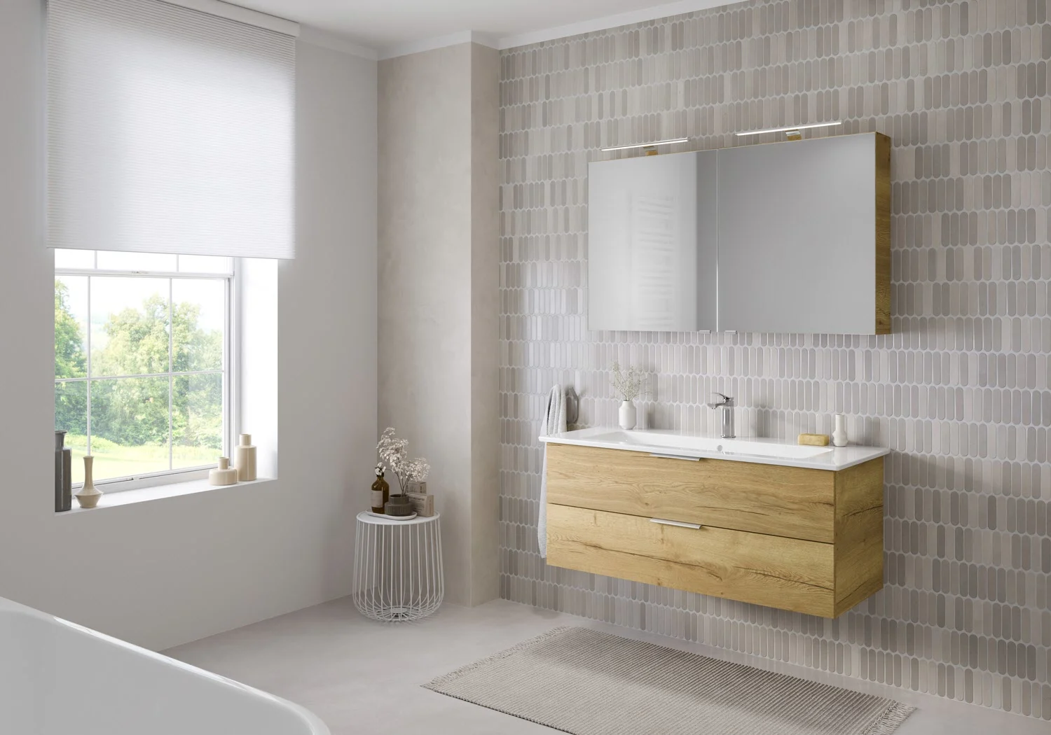 Flexibel. Passgenau. Stilvoll. – Die Badkollektion, die sich Ihrem Waschtisch anpasst!