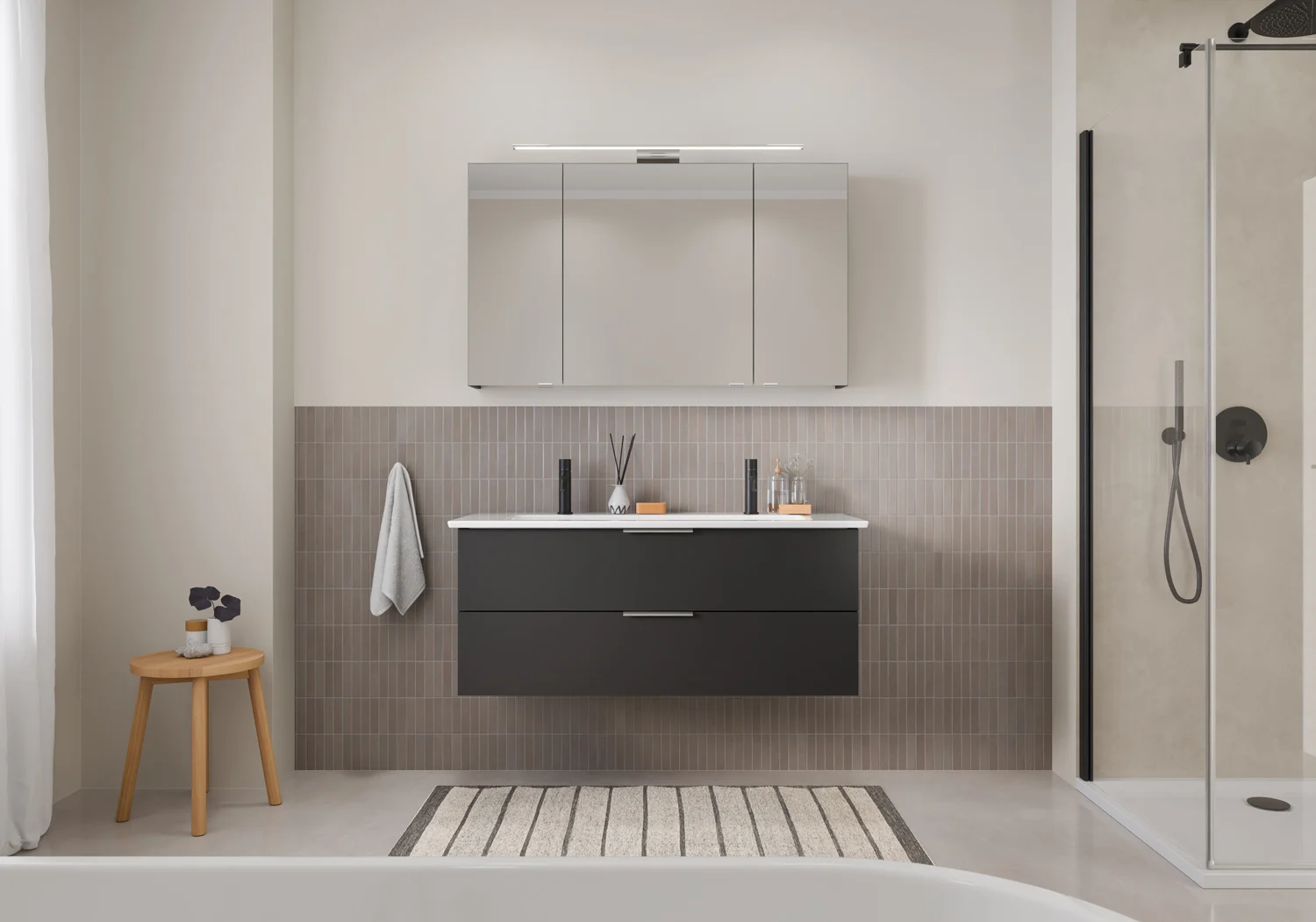 Ergänzen Sie Ihr Badezimmer ganz nach Wunsch auch noch mit dem passenden Hochschrank – für ein rundum stimmiges Einrichtungskonzept.