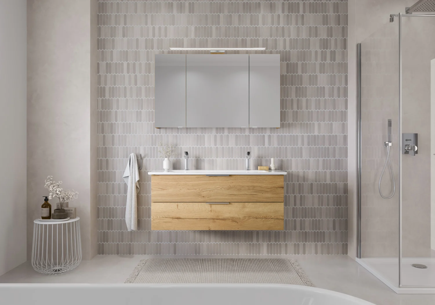 Flexibel. Passgenau. Stilvoll. – Die Badkollektion, die sich Ihrem Waschtisch anpasst!