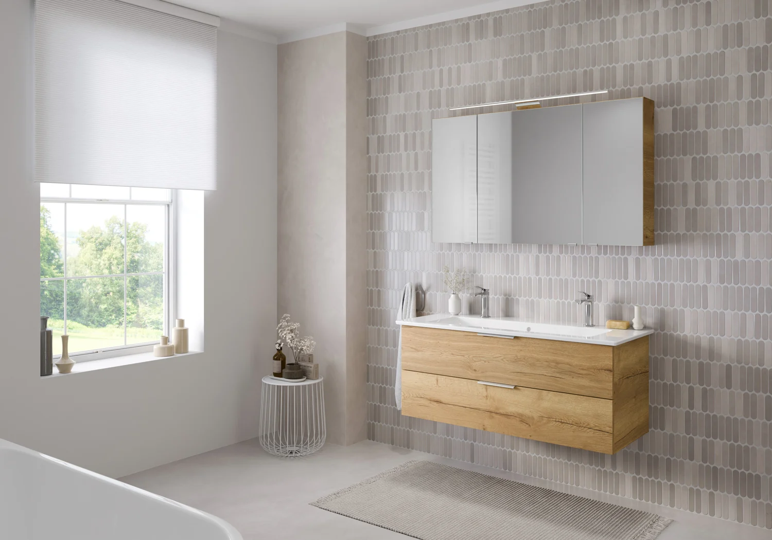 Steinkamp Living 2.0 / Villeroy & Boch Venticello Badmöbel Set 120 cm mit Spiegelschrank, 3 Türen