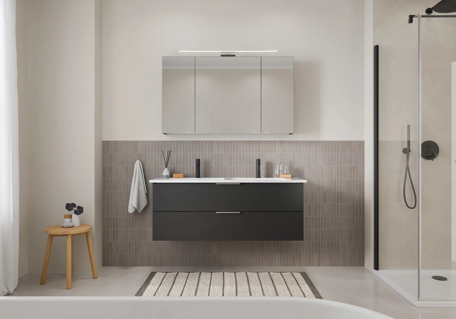 Flexibel. Passgenau. Stilvoll. – Die Badkollektion, die sich Ihrem Waschtisch anpasst!