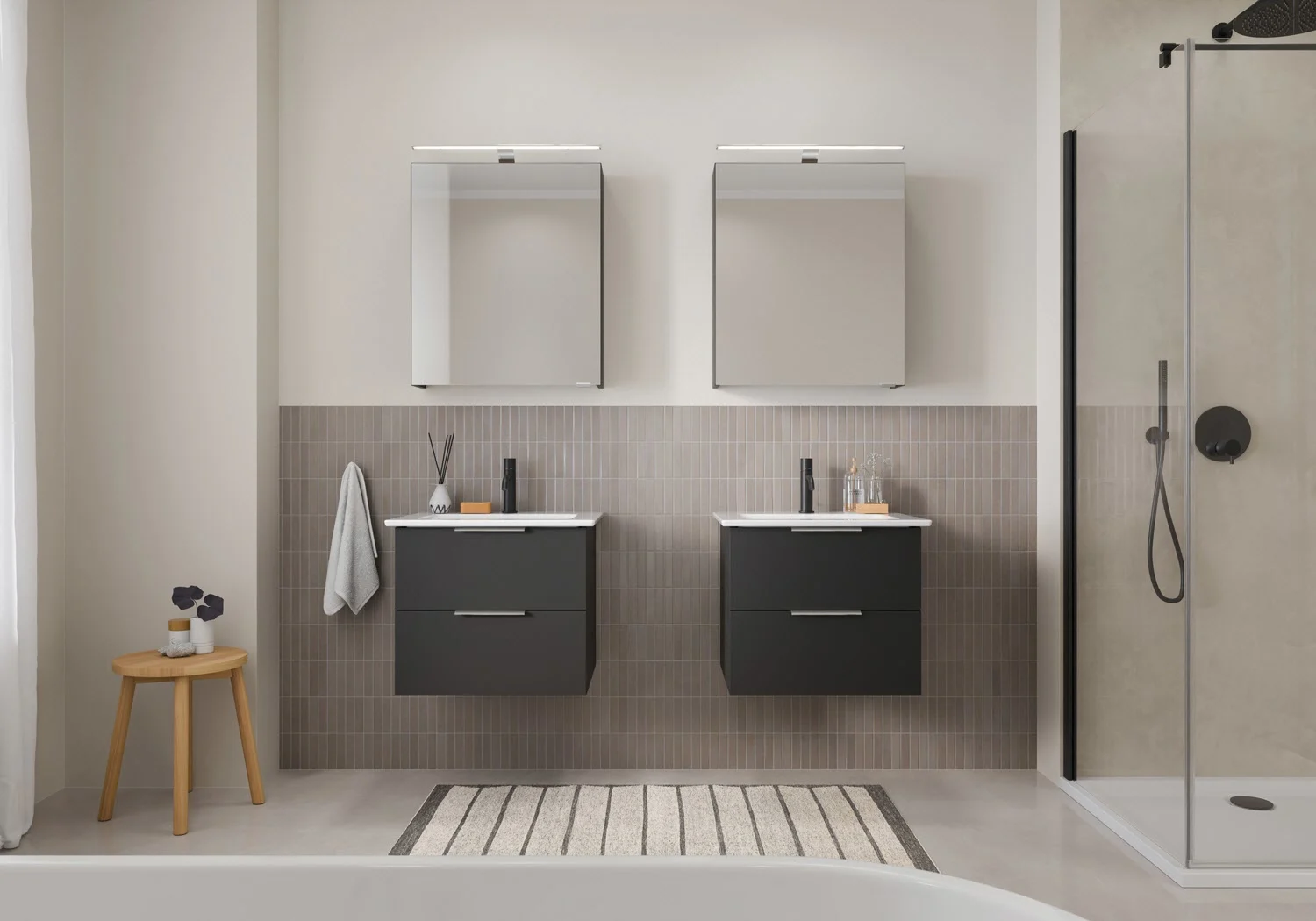 Flexibel. Passgenau. Stilvoll. – Die Badkollektion, die sich Ihrem Waschtisch anpasst!