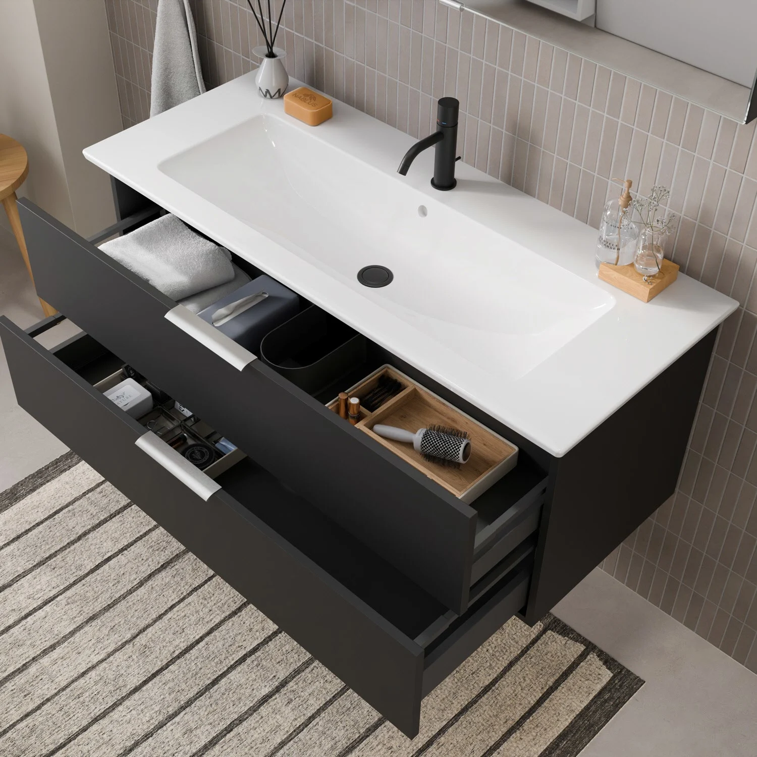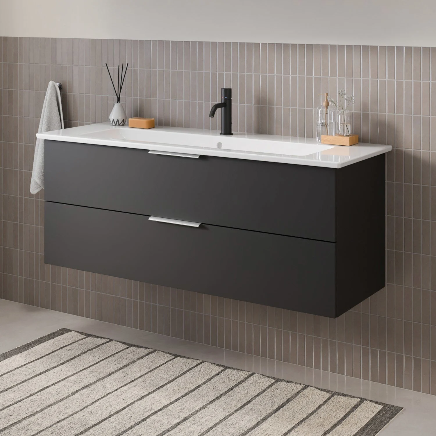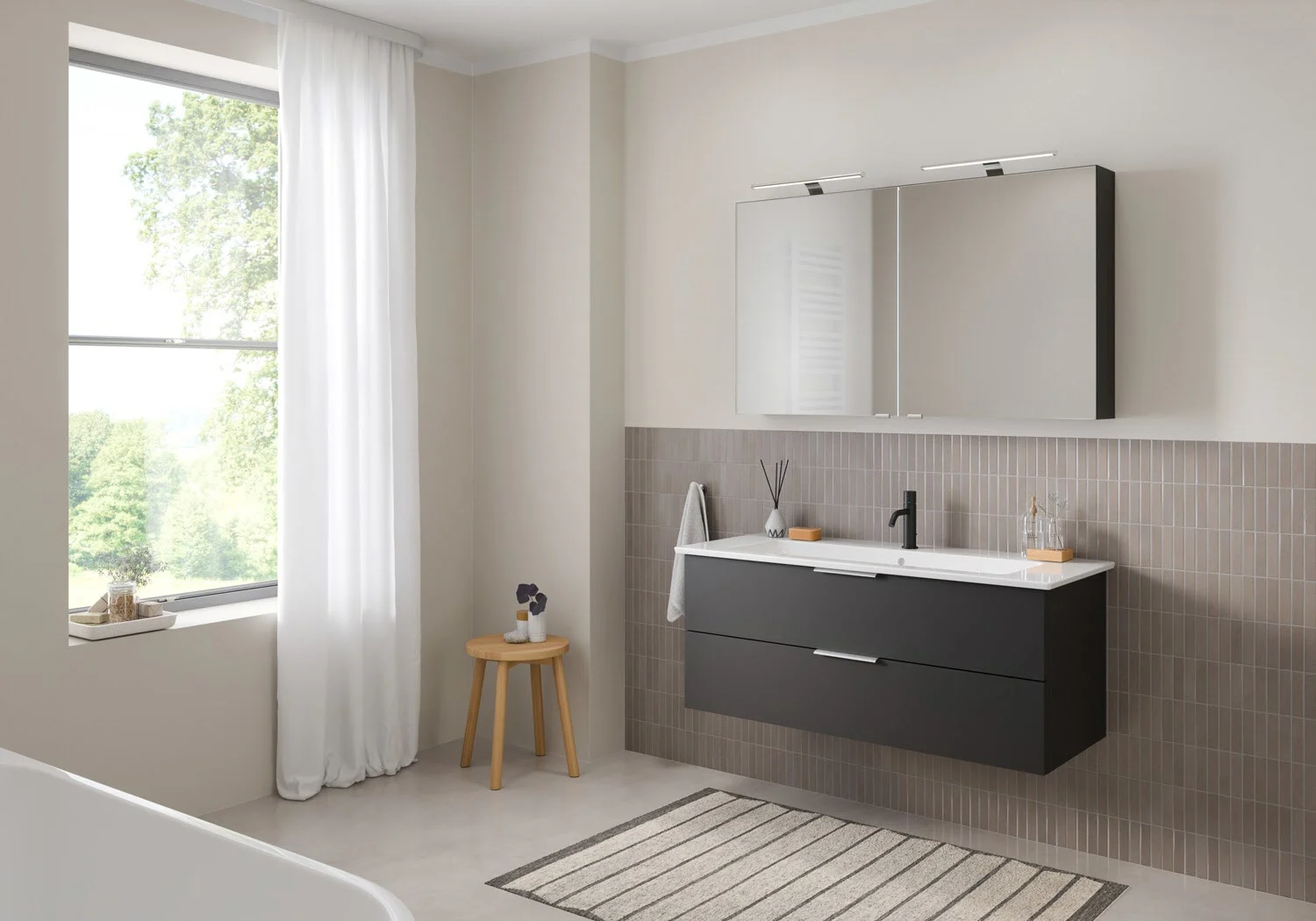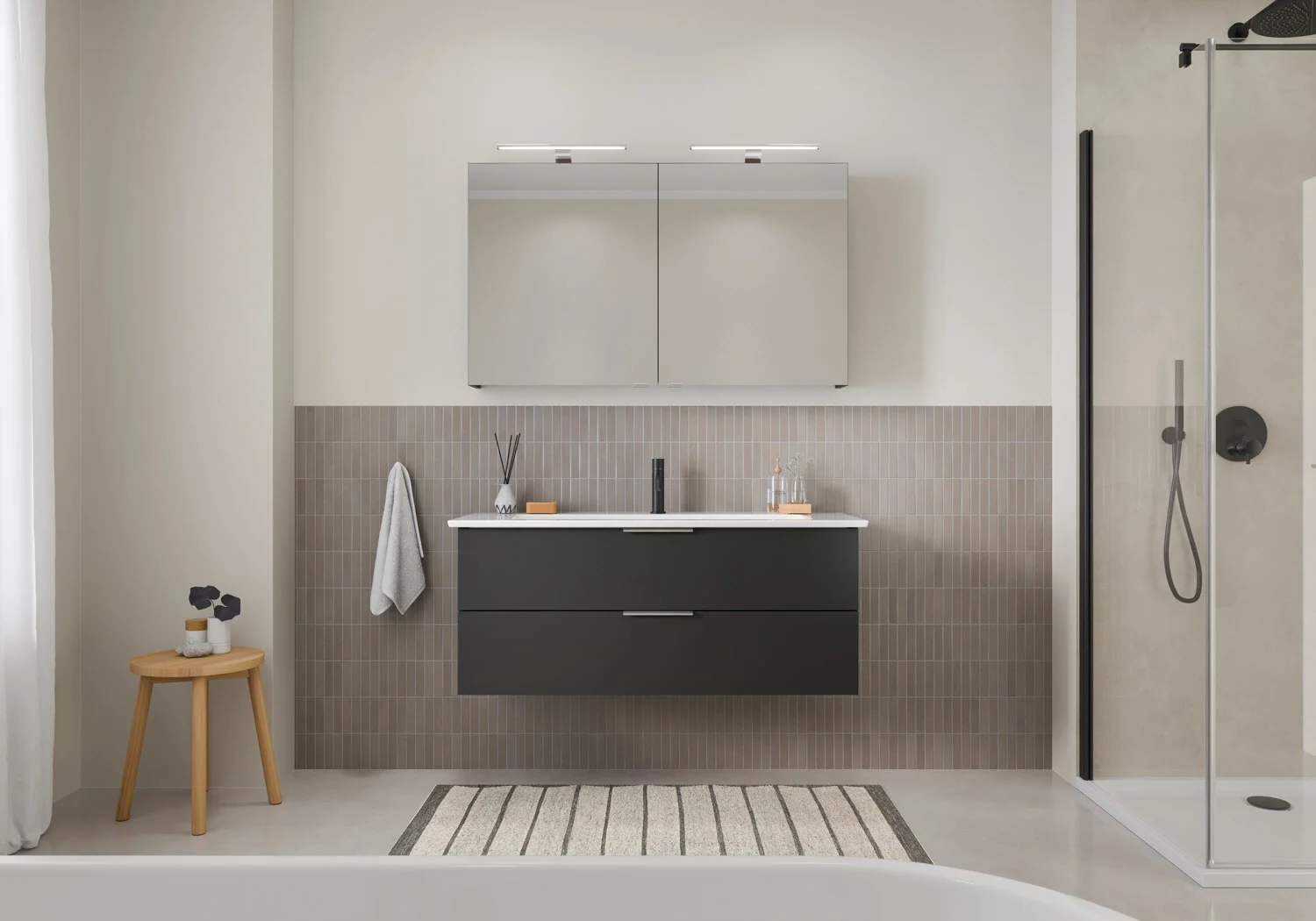 Flexibel. Passgenau. Stilvoll. – Die Badkollektion, die sich Ihrem Waschtisch anpasst!