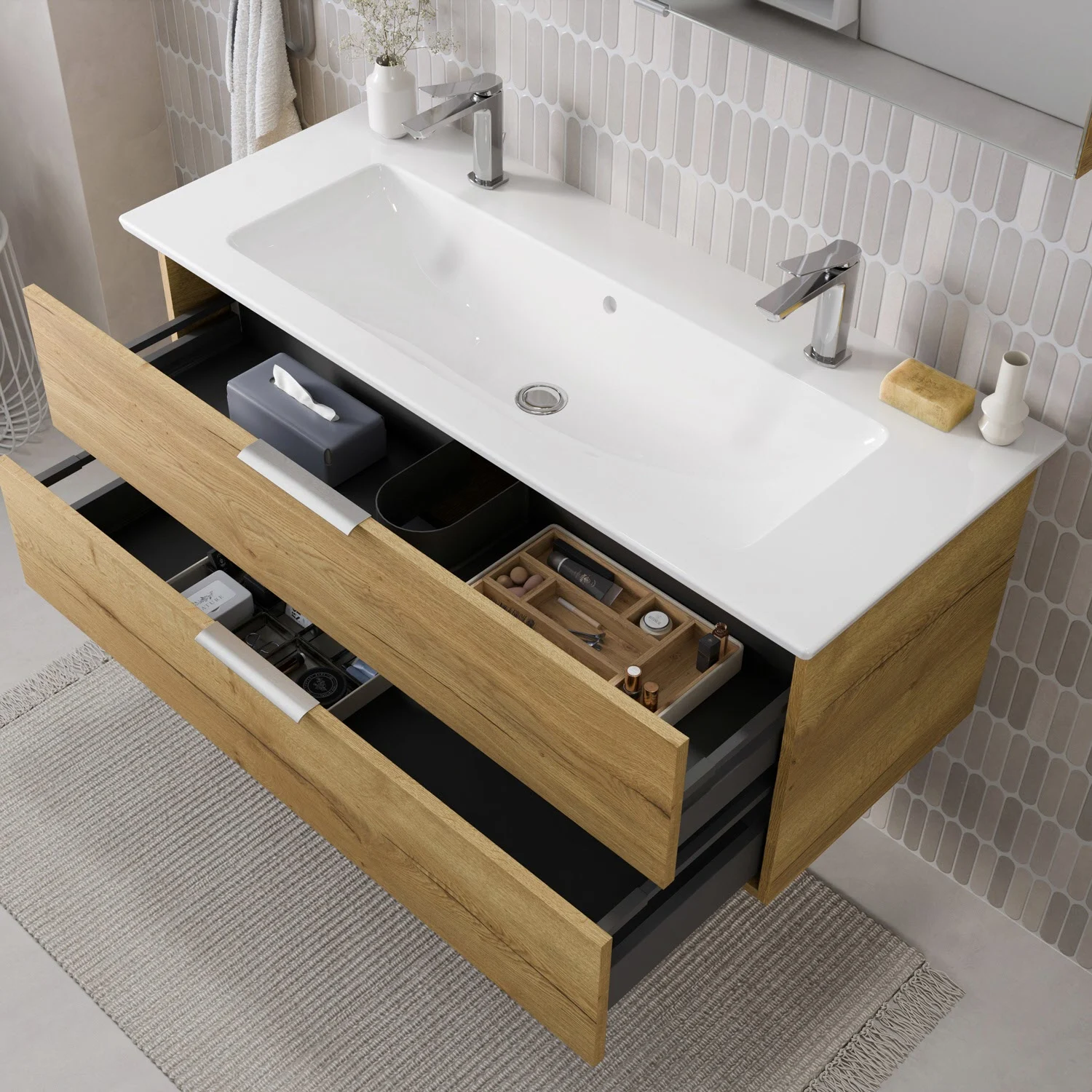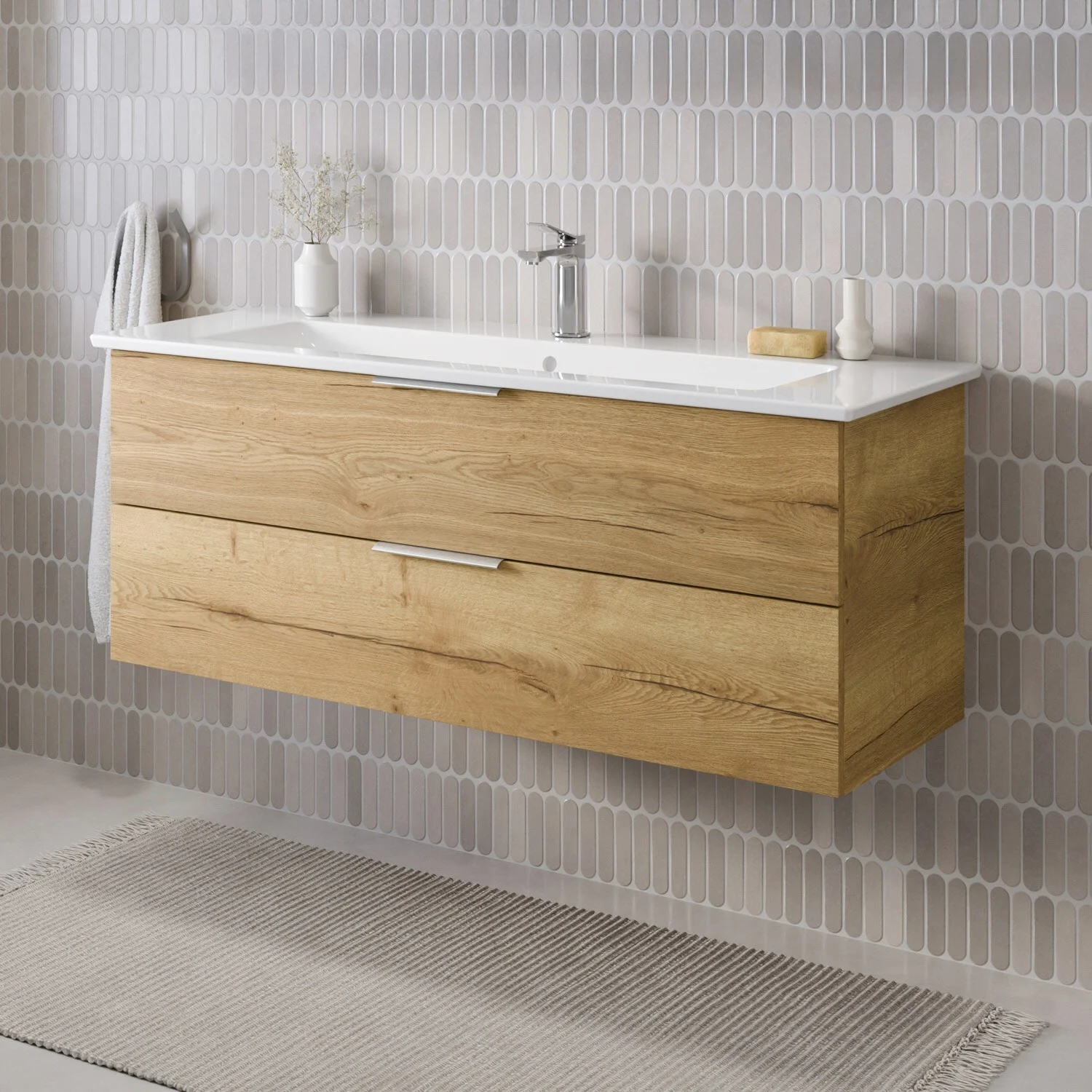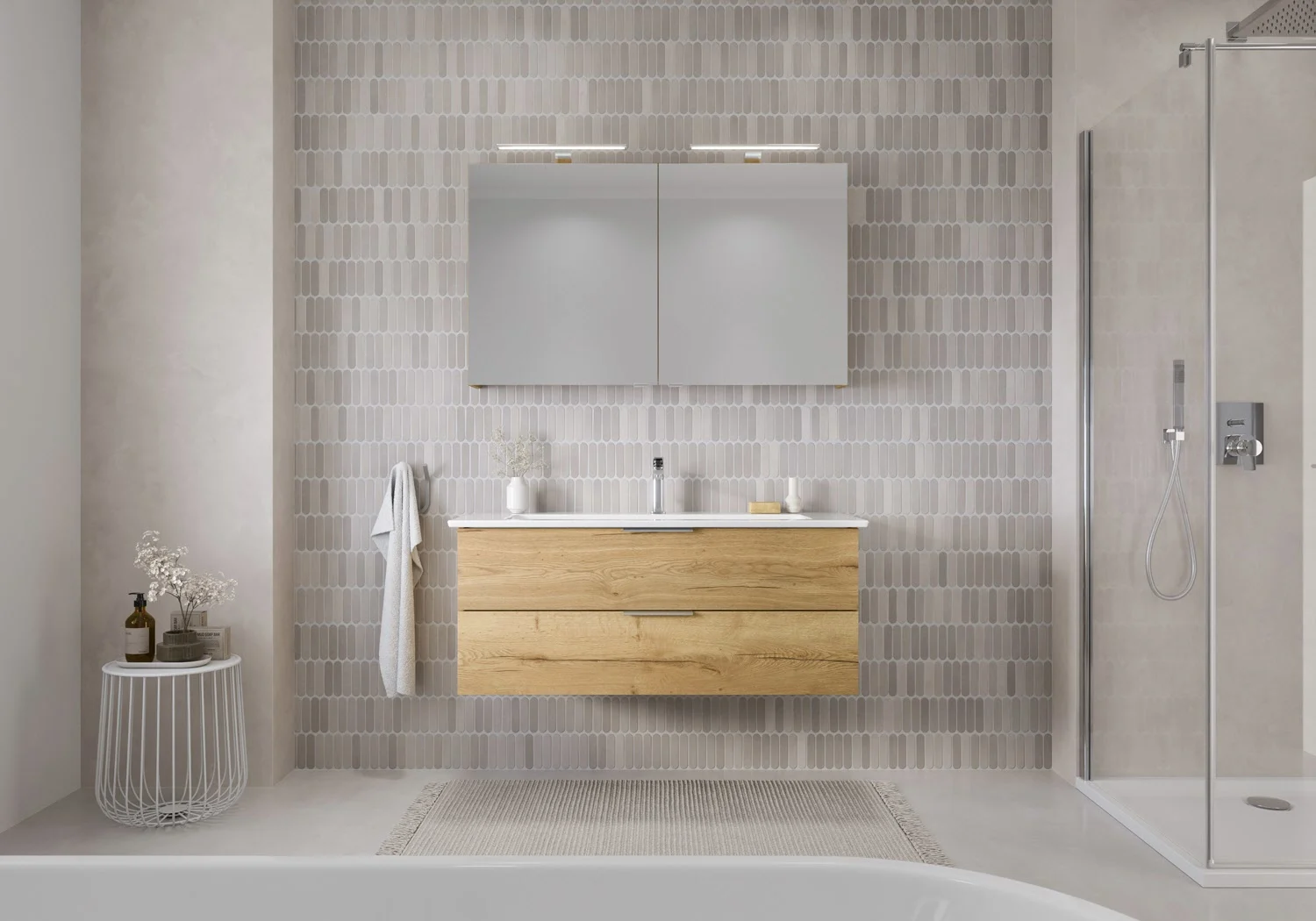 Flexibel. Passgenau. Stilvoll. – Die Badkollektion, die sich Ihrem Waschtisch anpasst!