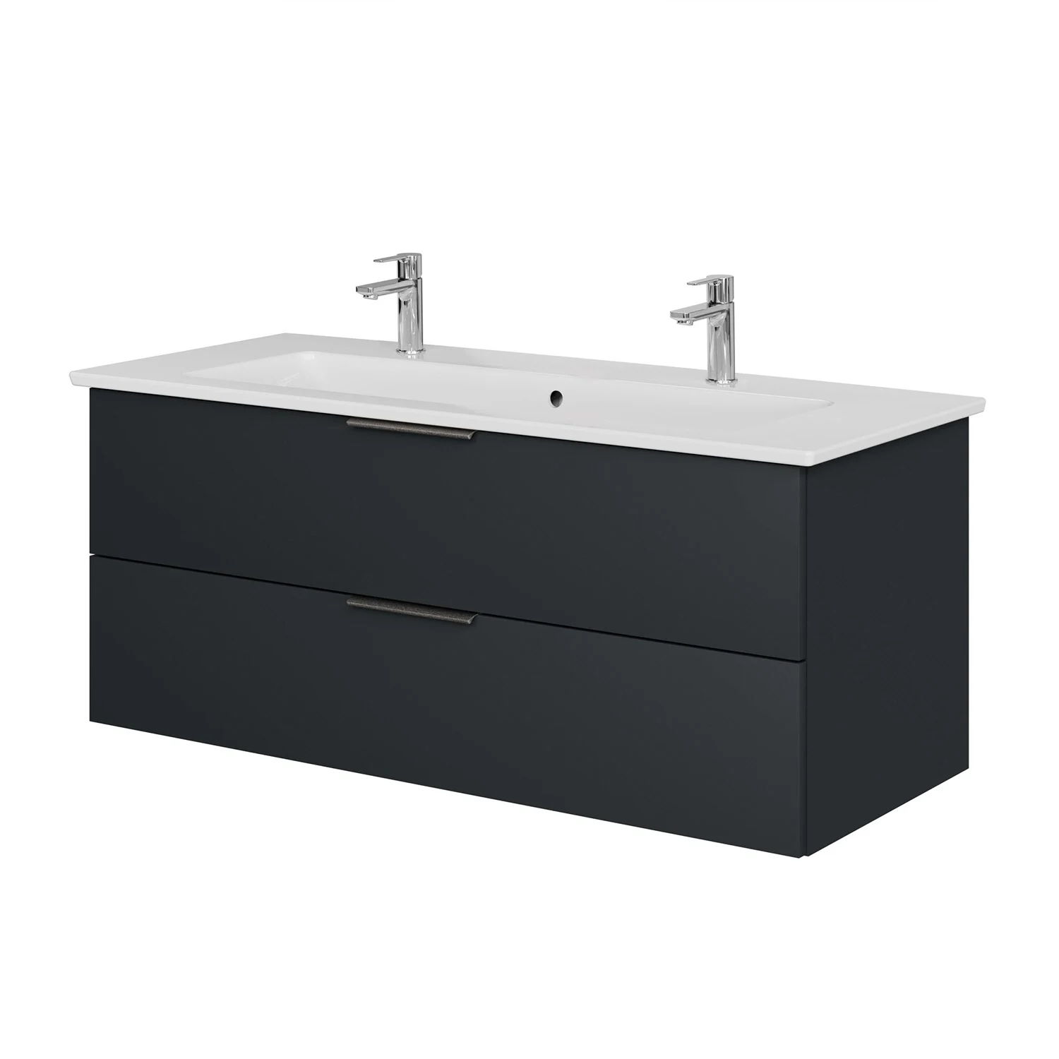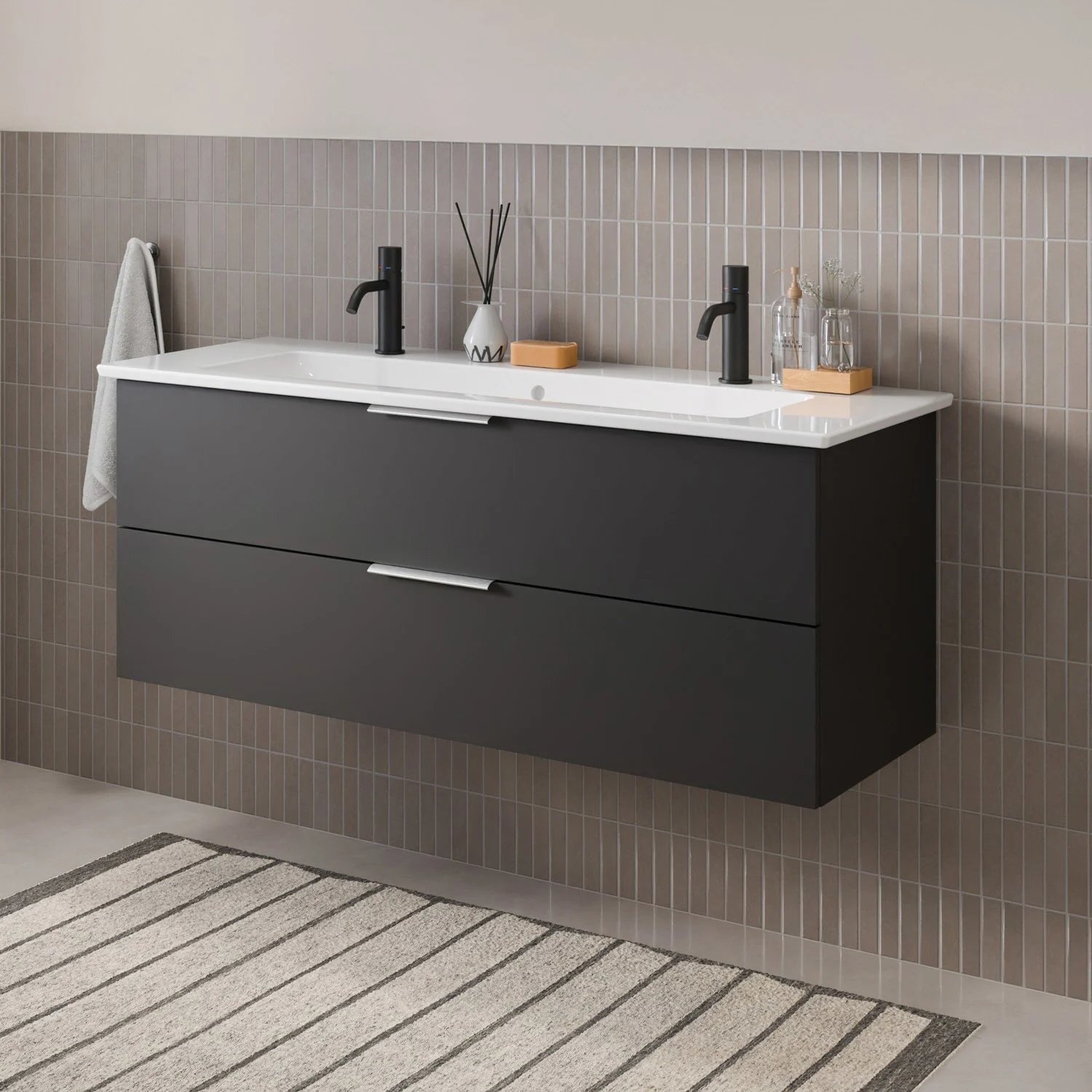 Steinkamp Living 2.0 Waschtischunterschrank 115 cm mit Villeroy & Boch Venticello Waschtisch 120 cm CeramicPlus mit Überlauf und 2 Hahnlöchern