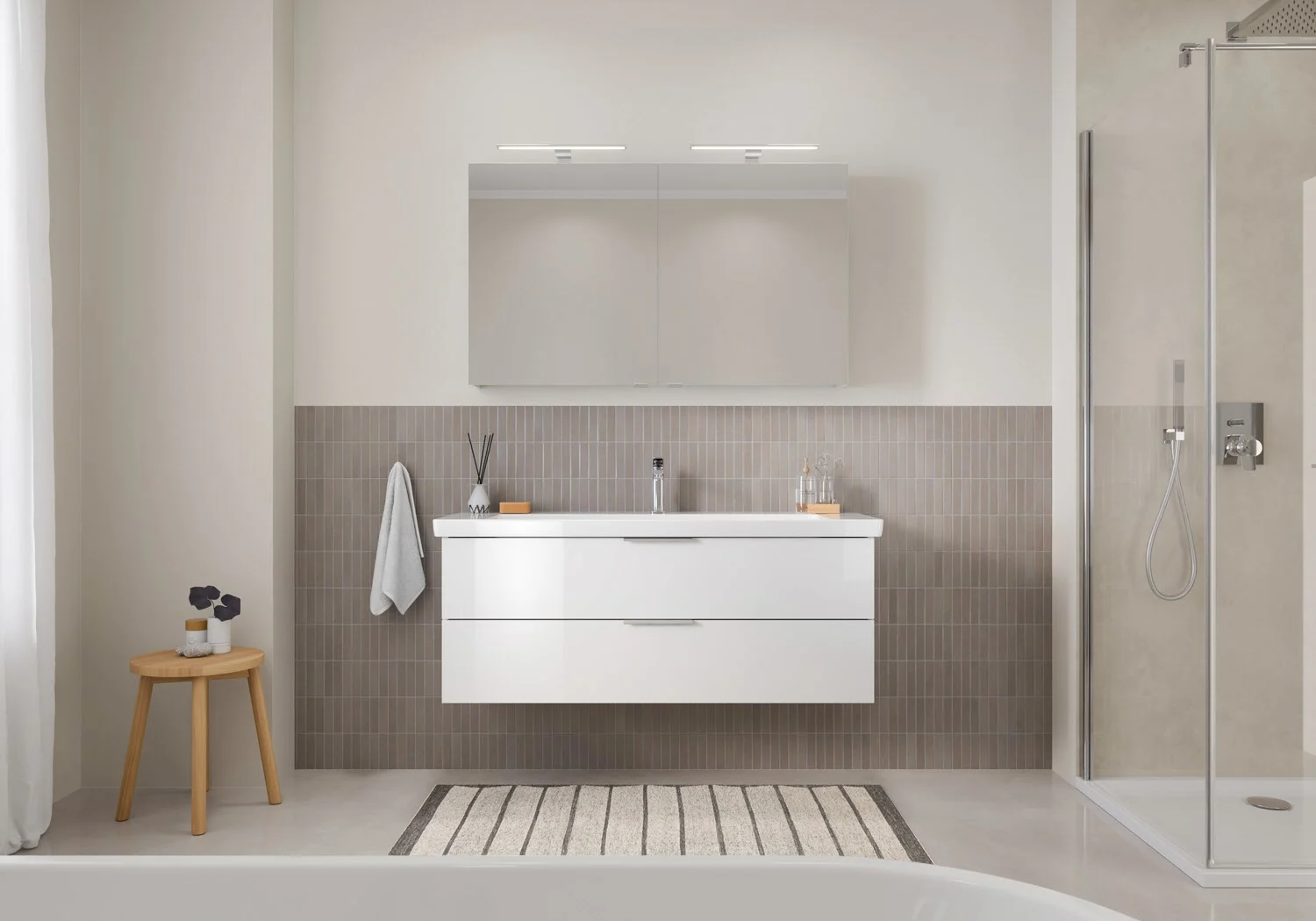 Flexibel. Passgenau. Stilvoll. – Die Badkollektion, die sich Ihrem Waschtisch anpasst!