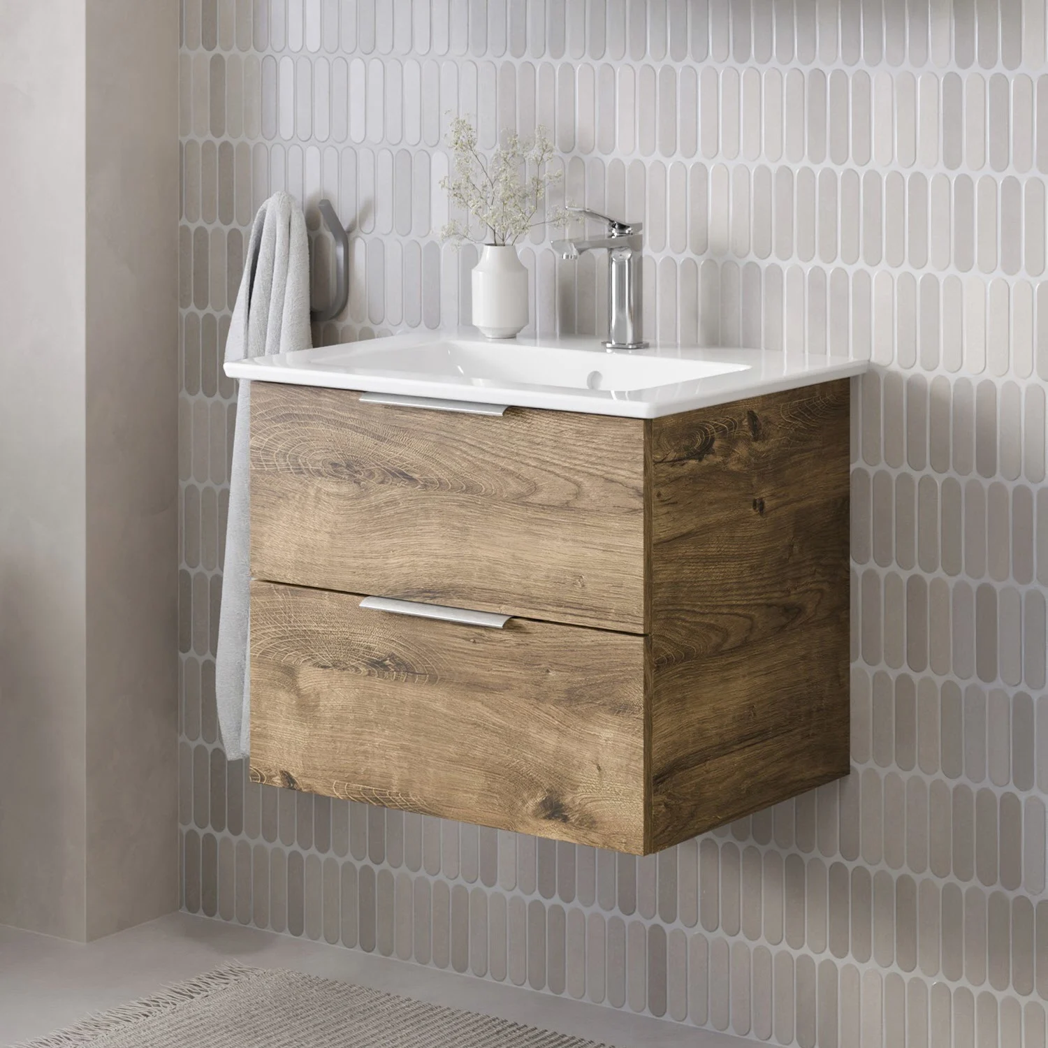 Steinkamp Living 2.0 Waschtischunterschrank 55 cm mit Villeroy & Boch Venticello Waschtisch 60 cm CeramicPlus mit Überlauf