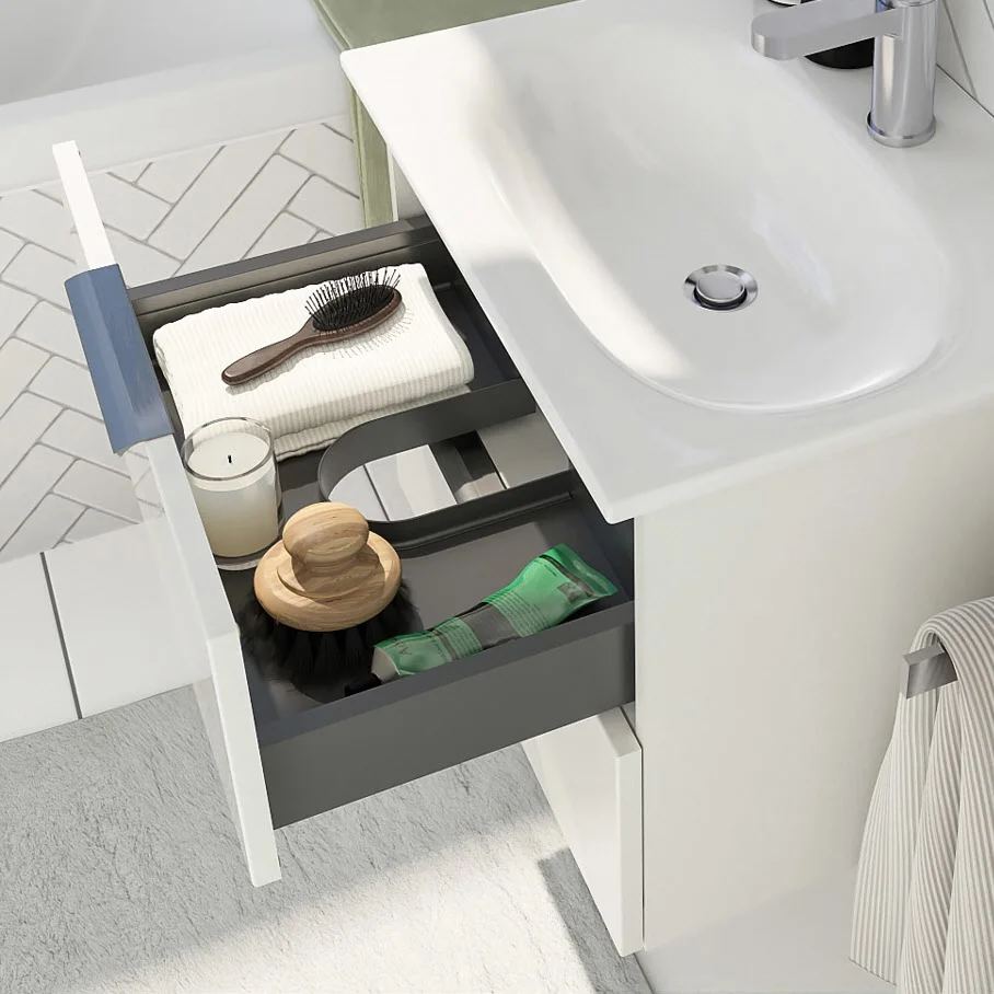 Sie haben bereits einen Waschtisch in Ihrem Bad montiert und wünschen sich mehr Stauraum? Erhältlich in verschiedenen, zeitgemäßen Dekoren und ausgestattet mit modernem, aufgesetztem Griff aus gebürstetem Edelstahl, verbinden die Living 2.0 Waschtischunterschränke zeitloses Design mit maximaler Funktionalität. Je nach Waschplatzbreite sorgen großzügige Auszüge oder Türen für optimalen Stauraum – übersichtlich, griffbereit, stilvoll. Ergänzen Sie Ihr Badezimmer ganz nach Wunsch mit dem passenden Spiegelschrank oder Hochschrank – für ein rundum stimmiges Einrichtungskonzept.