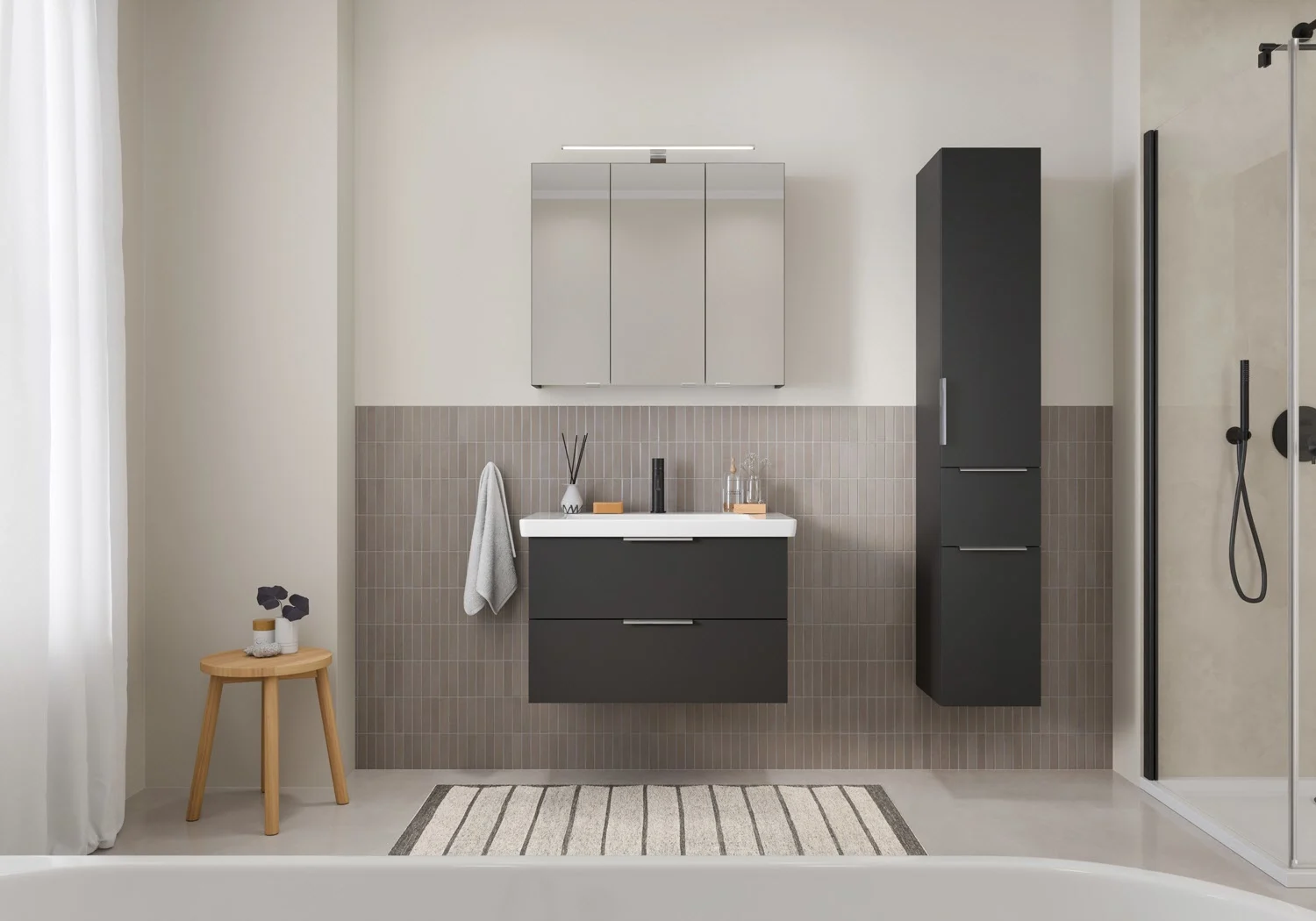 Sie haben bereits einen Waschtisch in Ihrem Bad montiert und wünschen sich mehr Stauraum? Erhältlich in verschiedenen, zeitgemäßen Dekoren und ausgestattet mit modernem, aufgesetztem Griff aus gebürstetem Edelstahl, verbinden die Living 2.0 Waschtischunterschränke zeitloses Design mit maximaler Funktionalität. Je nach Waschplatzbreite sorgen großzügige Auszüge oder Türen für optimalen Stauraum – übersichtlich, griffbereit, stilvoll. Ergänzen Sie Ihr Badezimmer ganz nach Wunsch mit dem passenden Spiegelschrank oder Hochschrank – für ein rundum stimmiges Einrichtungskonzept.