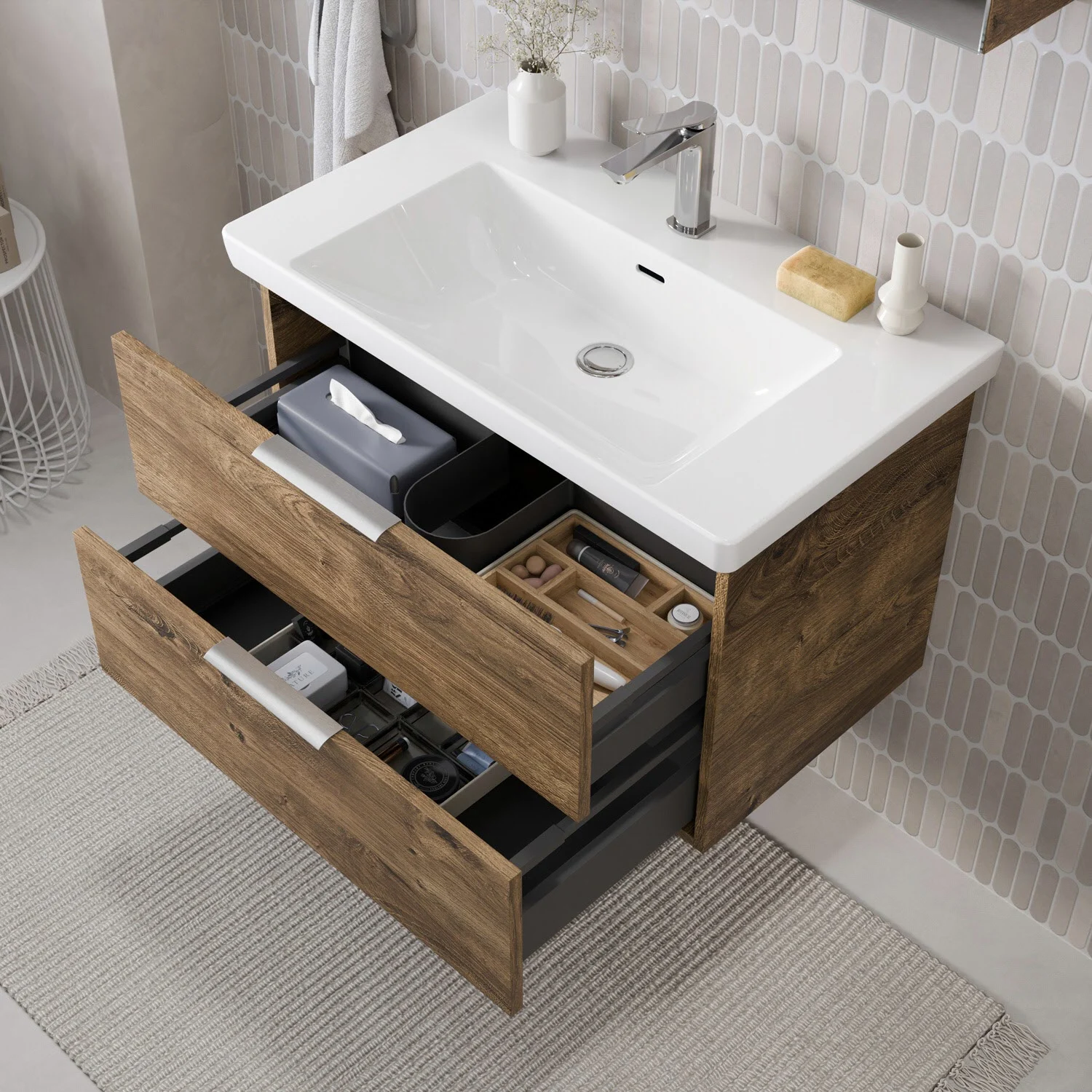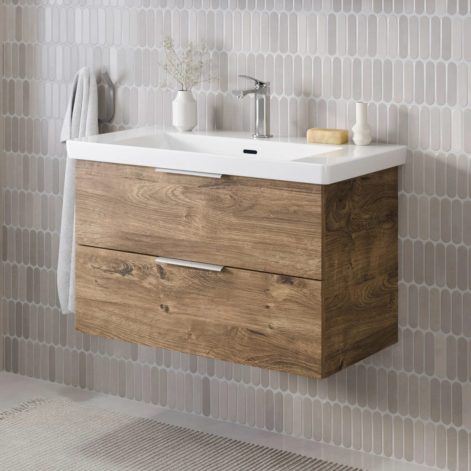 Steinkamp Living 2.0 Waschtischunterschrank 75 cm mit Villeroy & Boch Subway 3.0 Waschtisch 80 cm mit Überlauf