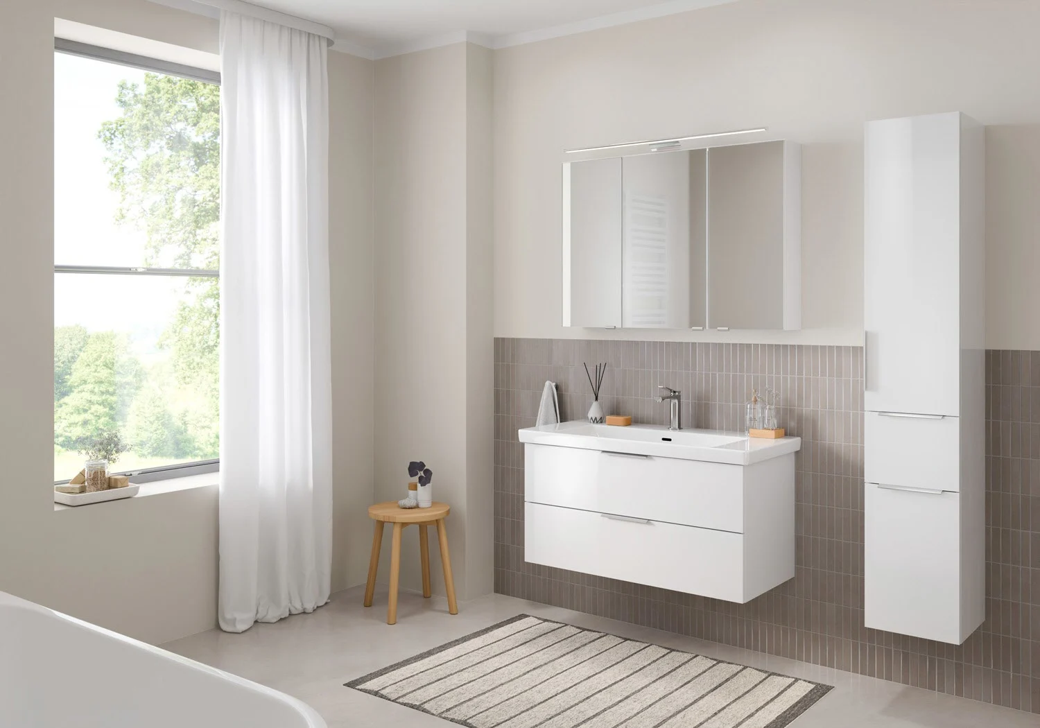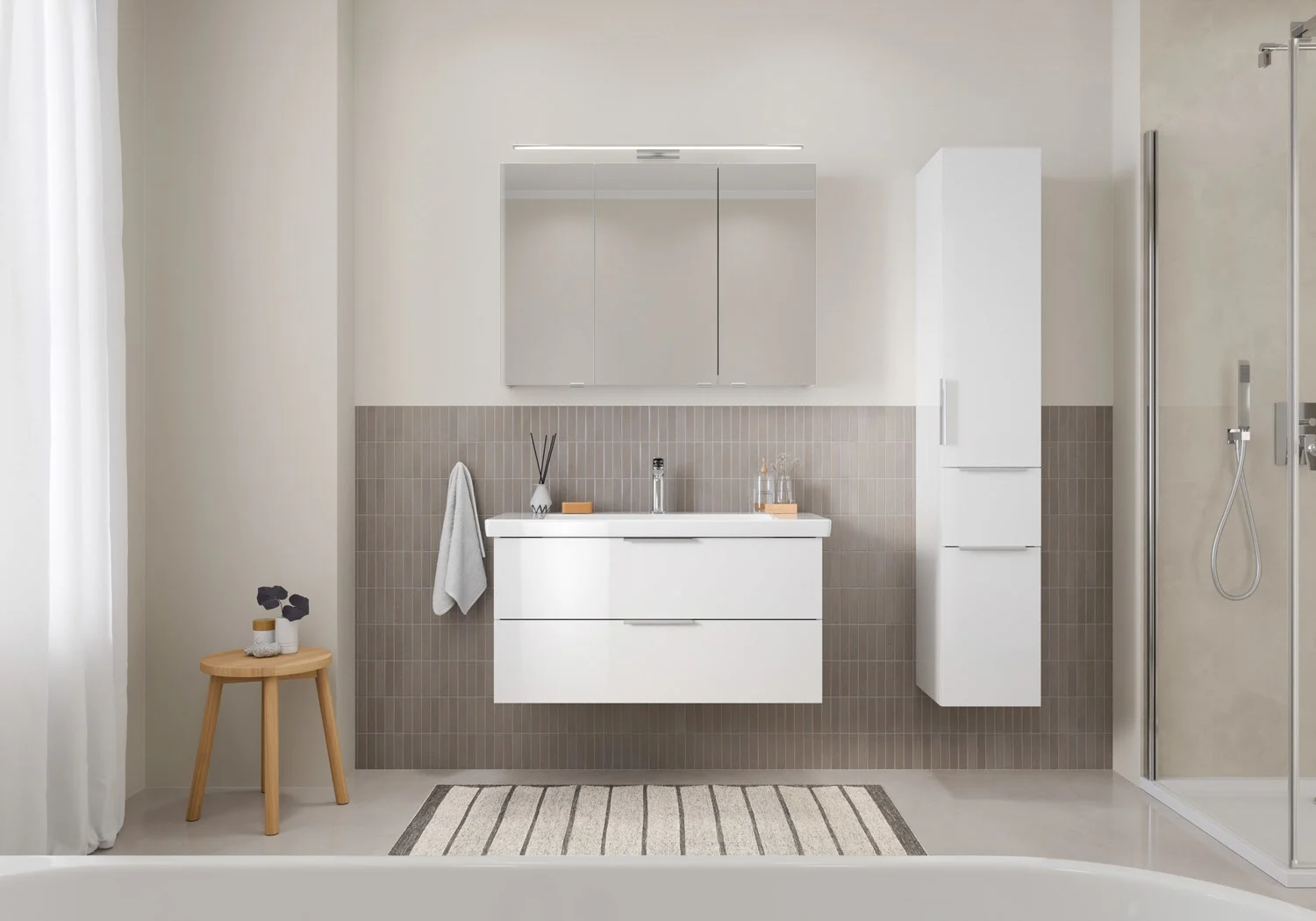 Flexibel. Passgenau. Stilvoll. – Die Badkollektion, die sich Ihrem Waschtisch anpasst!