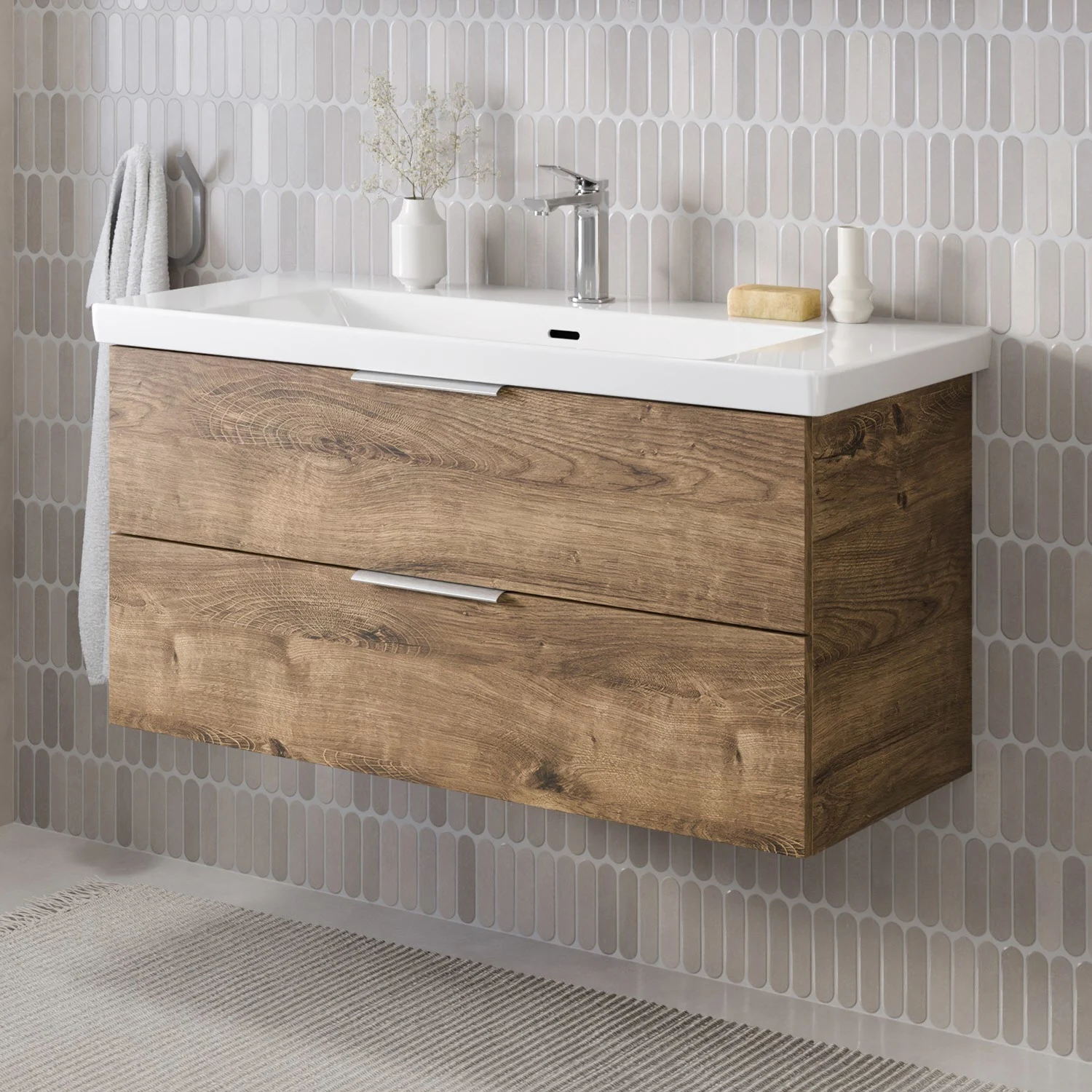 Steinkamp Living 2.0 Waschtischunterschrank 95 cm mit Villeroy & Boch Subway 3.0 Waschtisch 100 cm mit Überlauf