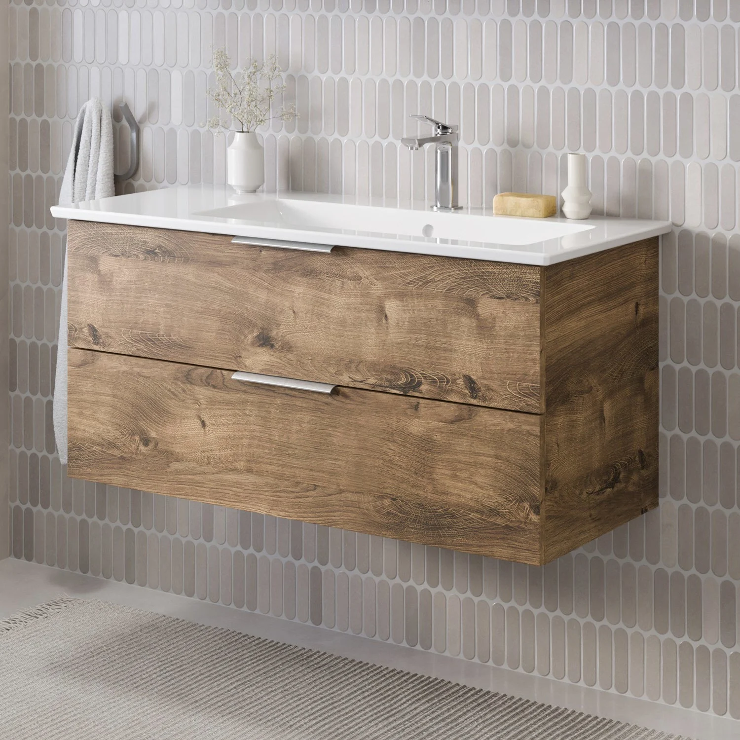 Steinkamp Living 2.0 Waschtischunterschrank 95 cm mit Villeroy & Boch Venticello Waschtisch 100 cm CeramicPlus mit Überlauf, Becken rechts