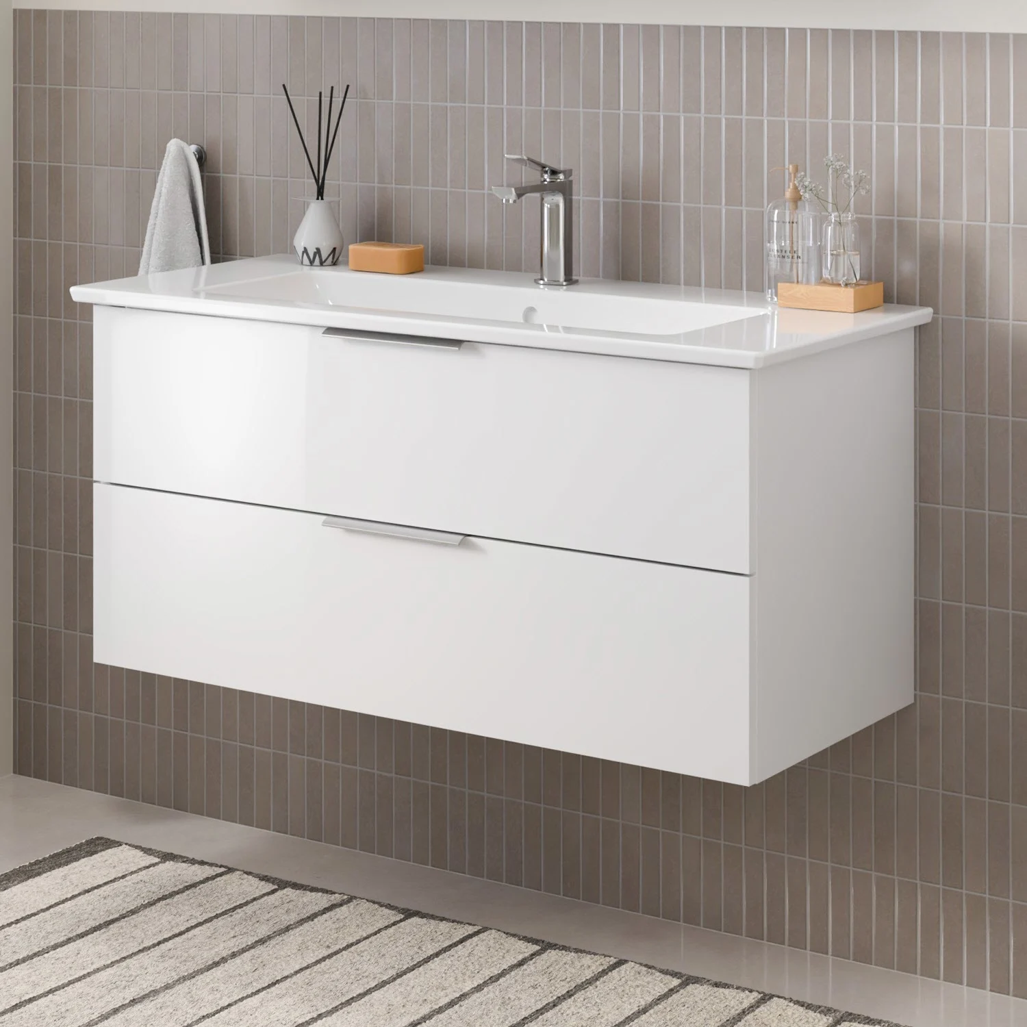 Steinkamp Living 2.0 Waschtischunterschrank 95 cm mit Villeroy & Boch Venticello Waschtisch 100 cm CeramicPlus mit Überlauf und 1 Hahnloch