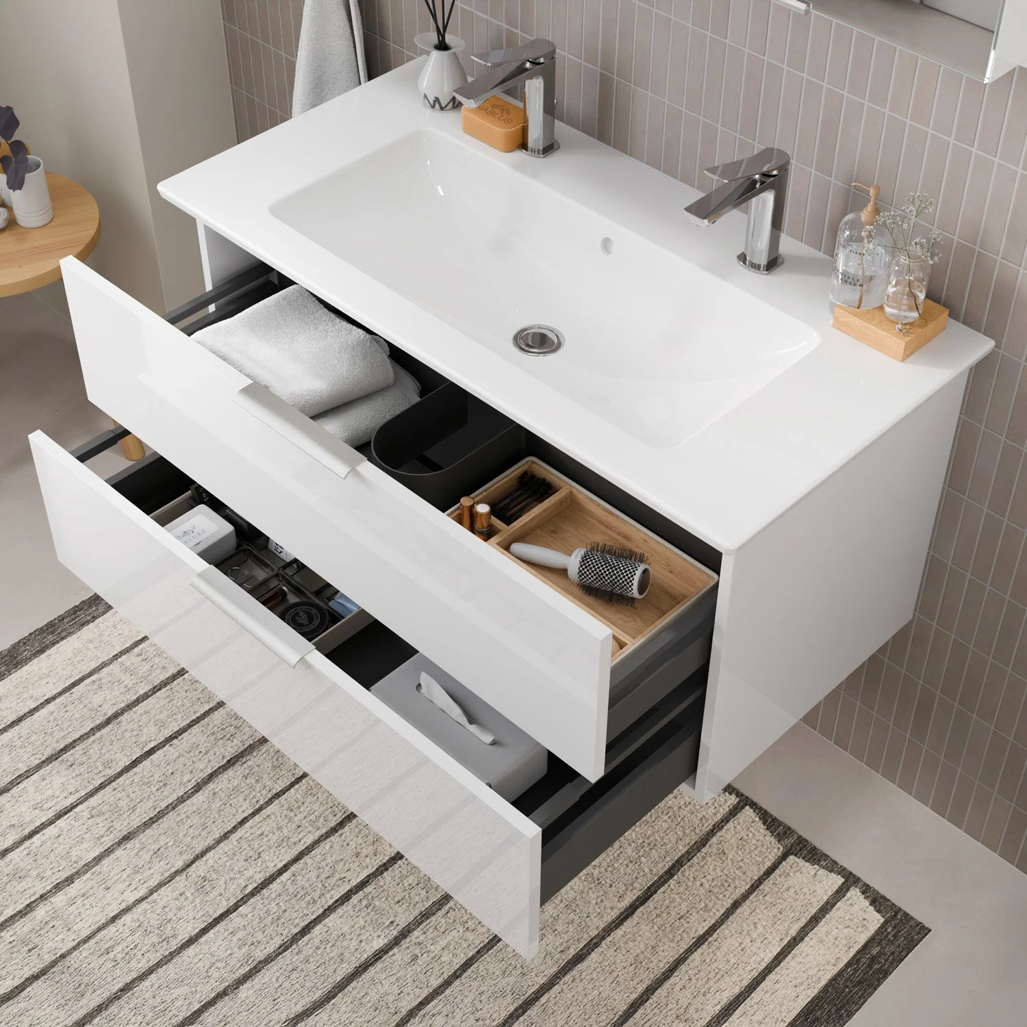 Steinkamp Living 2.0 Waschtischunterschrank 95 cm mit Villeroy & Boch Venticello Waschtisch 100 cm mit Überlauf und 2 Hahnlöchern