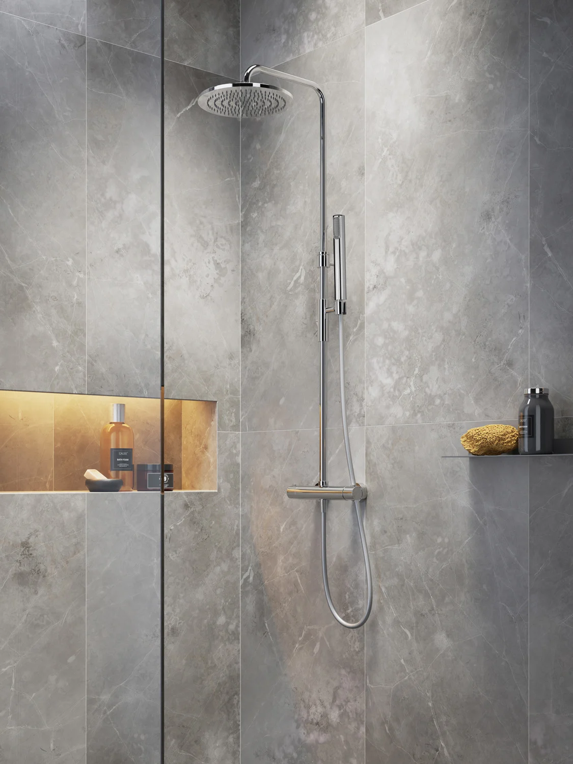 Steinkamp Living Thermostat Duschsystem AP mit Kopfbrause Ø 22,5 cm und Stabhandbrause, Höhenverstellbar