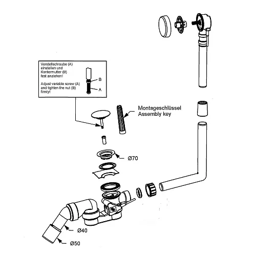 Sturotec Badewannen Ab- und Überlaufgarnitur mit Excenter für Normallänge