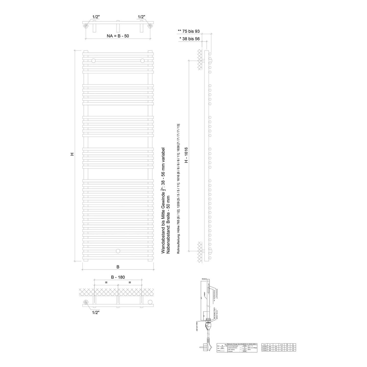 - montagefertig inkl. Heizstab Typ 1 (weiß), Anschlusskabel 1,2 m lang, Thermoflüssigkeit, 1 Befestigungsset (variabler Wandabstand) sowie 1 Stück Verschluss- und 1 Stück Entlüftungsstopfen