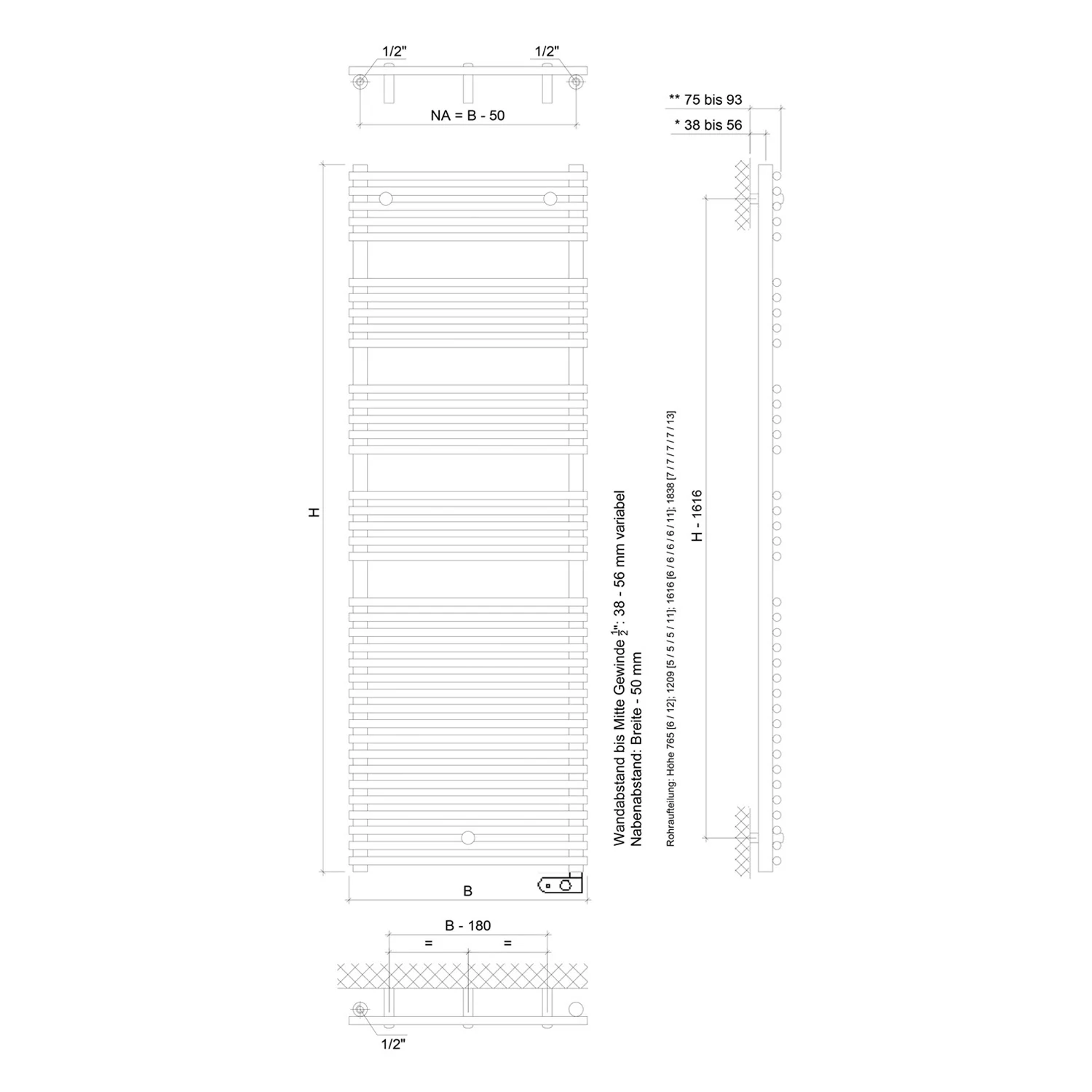 - montagefertig inkl. Heizstab Typ 3 (weiß), Anschlusskabel 1,2 m lang, Thermoflüssigkeit, 1 Befestigungsset (variabler Wandabstand) sowie 1 Stück Verschluss- und 1 Stück Entlüftungsstopfen