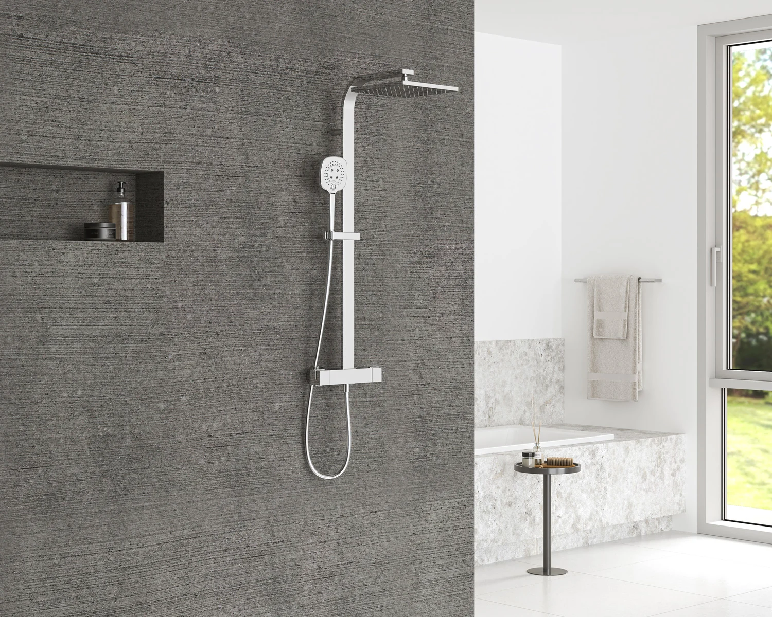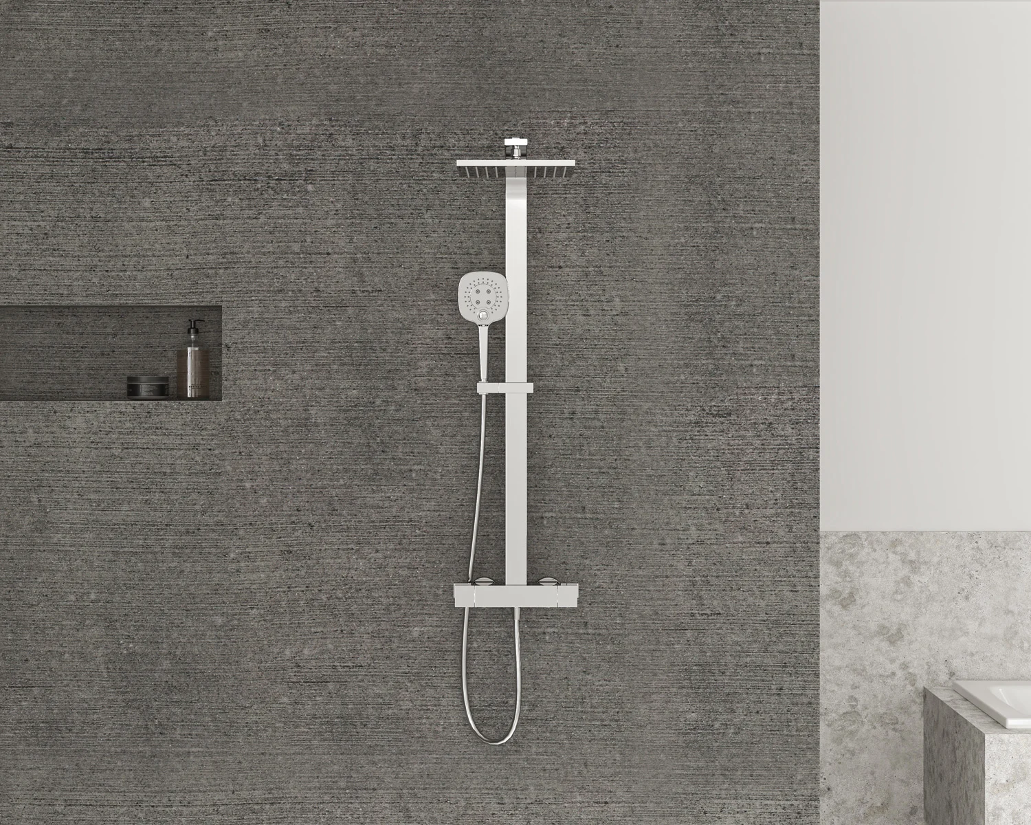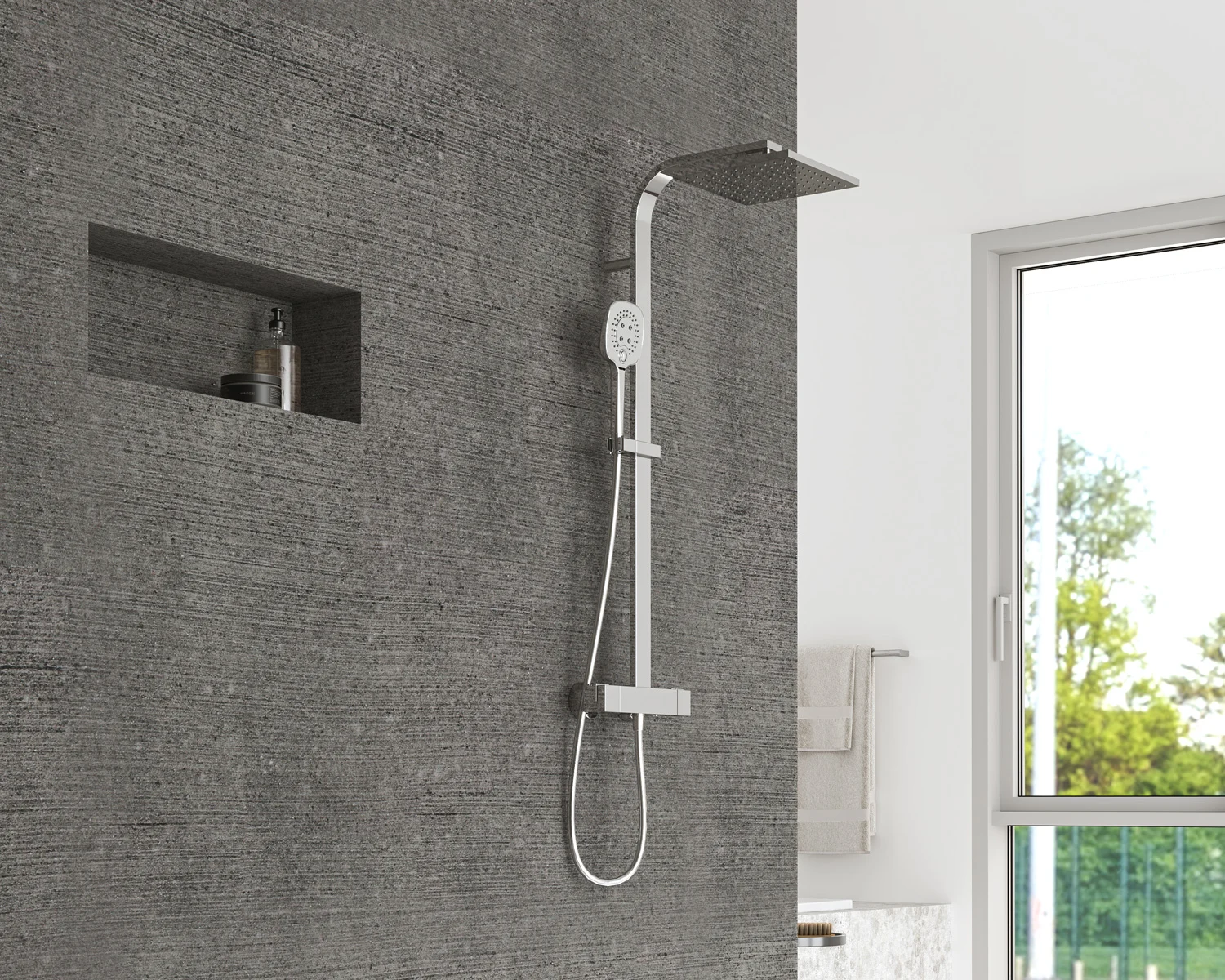 Sturotec Eco-Line 6 l/min Duschsystem eckig mit Thermostatarmatur und Kopfbrause 25 cm