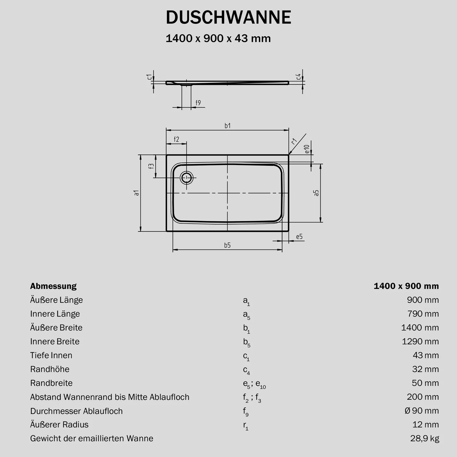 Sturotec Sturo flat Duschwanne 140 x 90 x 4,3 cm