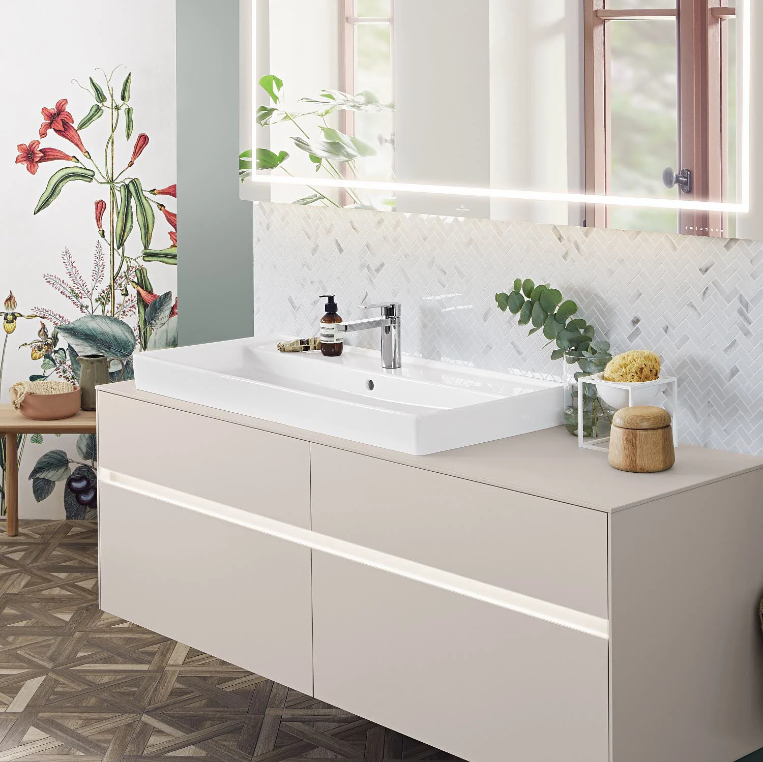Villeroy & Boch Collaro Schrankwaschtisch 100 cm geschliffen, mit Überlauf, 1 Hahnloch
