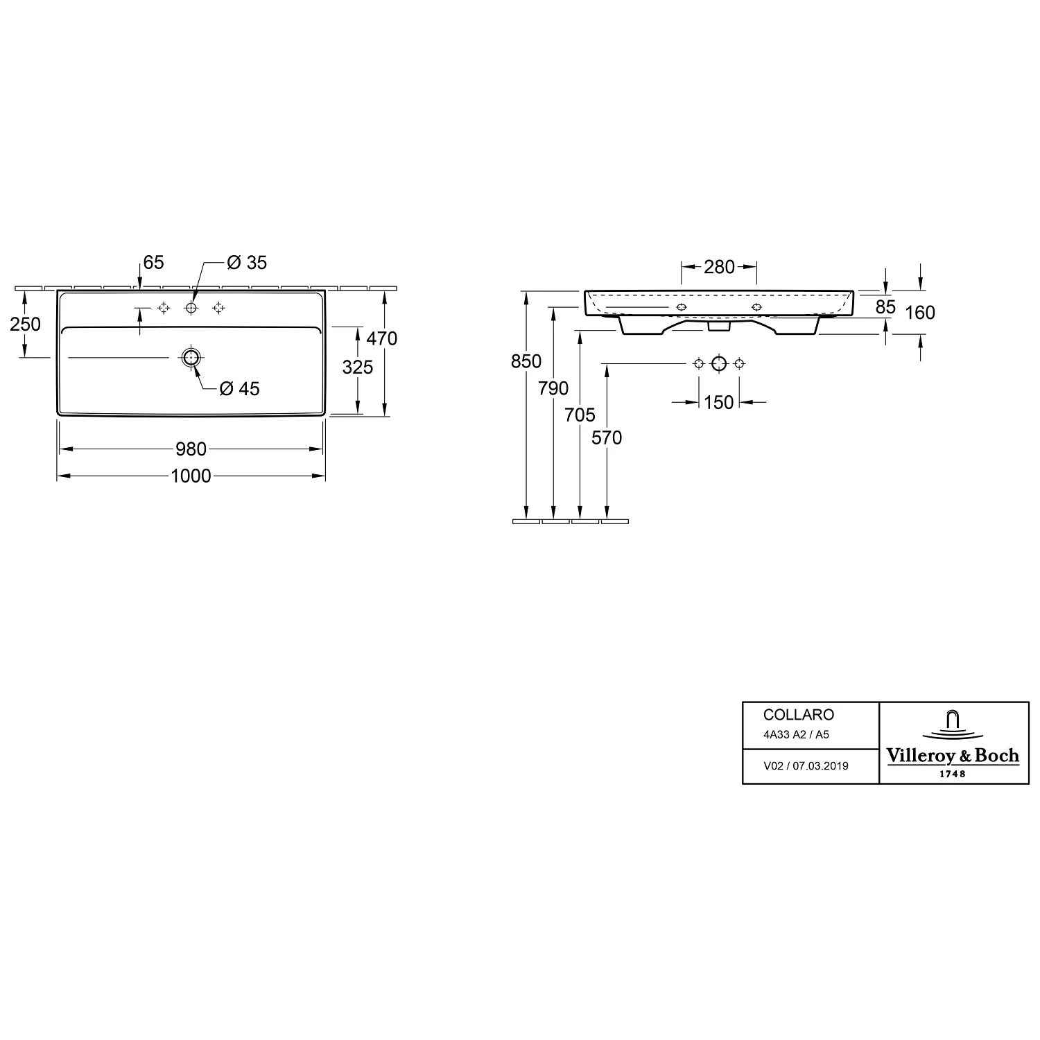Villeroy & Boch Collaro Schrankwaschtisch 100 cm mit Überlauf, 1 Hahnloch