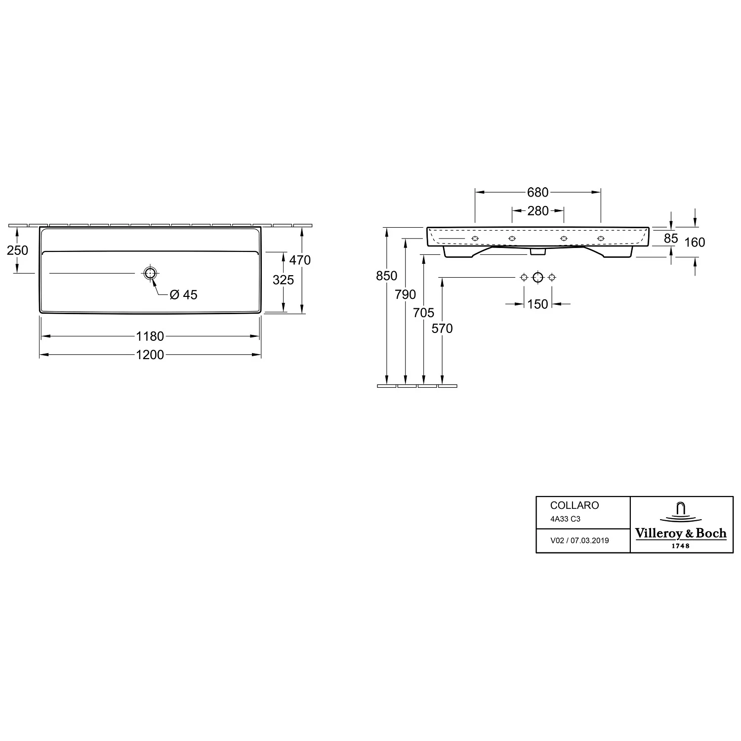 Villeroy & Boch Collaro Schrankwaschtisch 120 cm ohne Überlauf, ohne Hahnloch
