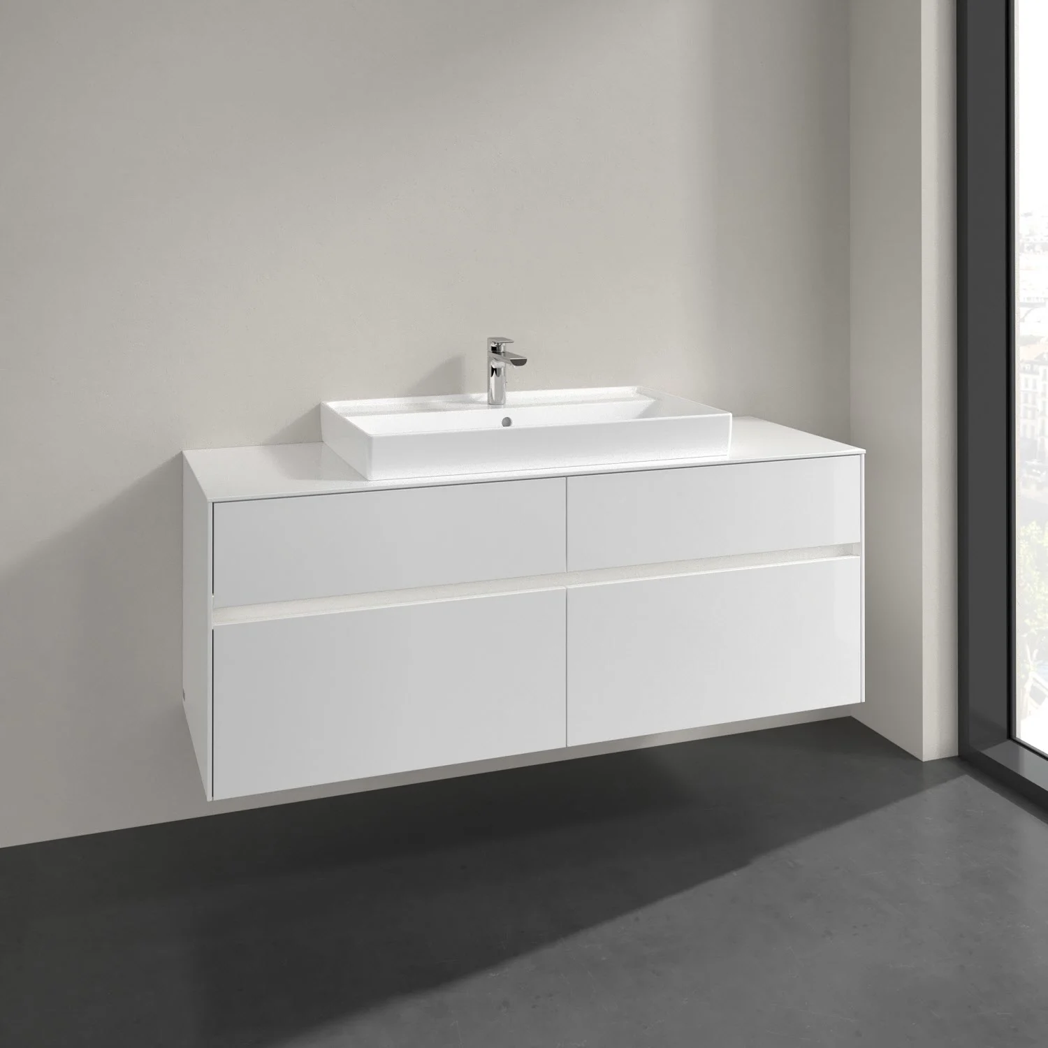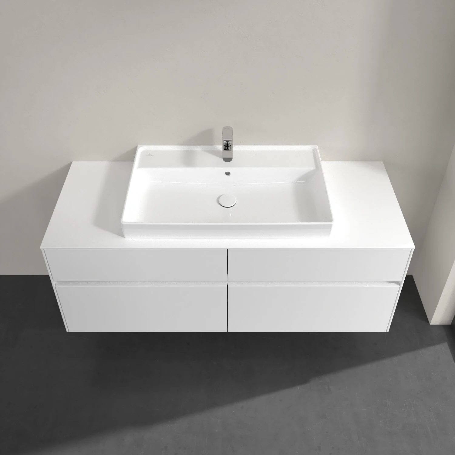 Villeroy & Boch Collaro Waschtischunterschrank 140 x 54,8 cm mit 4 Auszügen und LED Licht, für WT mittig