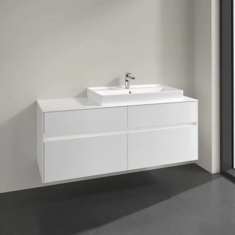 Villeroy & Boch Collaro Waschtischunterschrank 140 x 54,8 cm mit 4 Auszügen und LED Licht, für WT rechts