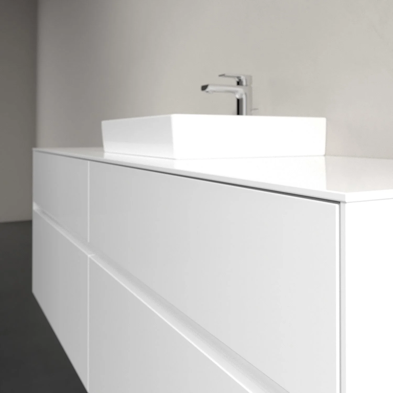 Stauraumwunder im zeitgemäßen Design: Der Villeroy & Boch Waschbeckenunterschrank aus der Collaro Kollektion eignet sich besonders für Familienbäder und bietet genau den Platz, der dort benötigt wird. Eine Griffleiste mit integrierter, stufenlos einstellbarer LED-Beleuchtung sorgt für eine schlichte, stimmungsvolle Front. Steuern lässt sich das Licht über einen Touch-Sensor seitlich am Unterschrank. Im Inneren bietet das Möbelstück mit vier Auszügen erstaunlich viel Komfort – ermöglicht durch großzügiges Platzangebot und integrierte Antirutschmatten. Variabel setzbare Glasabtrennungen und mitgelieferte Accessory Boxen sorgen für den nötigen Überblick. Dank SoftClosing und Selbsteinzug lassen sich die Auszüge nach der Nutzung lautlos schließen.